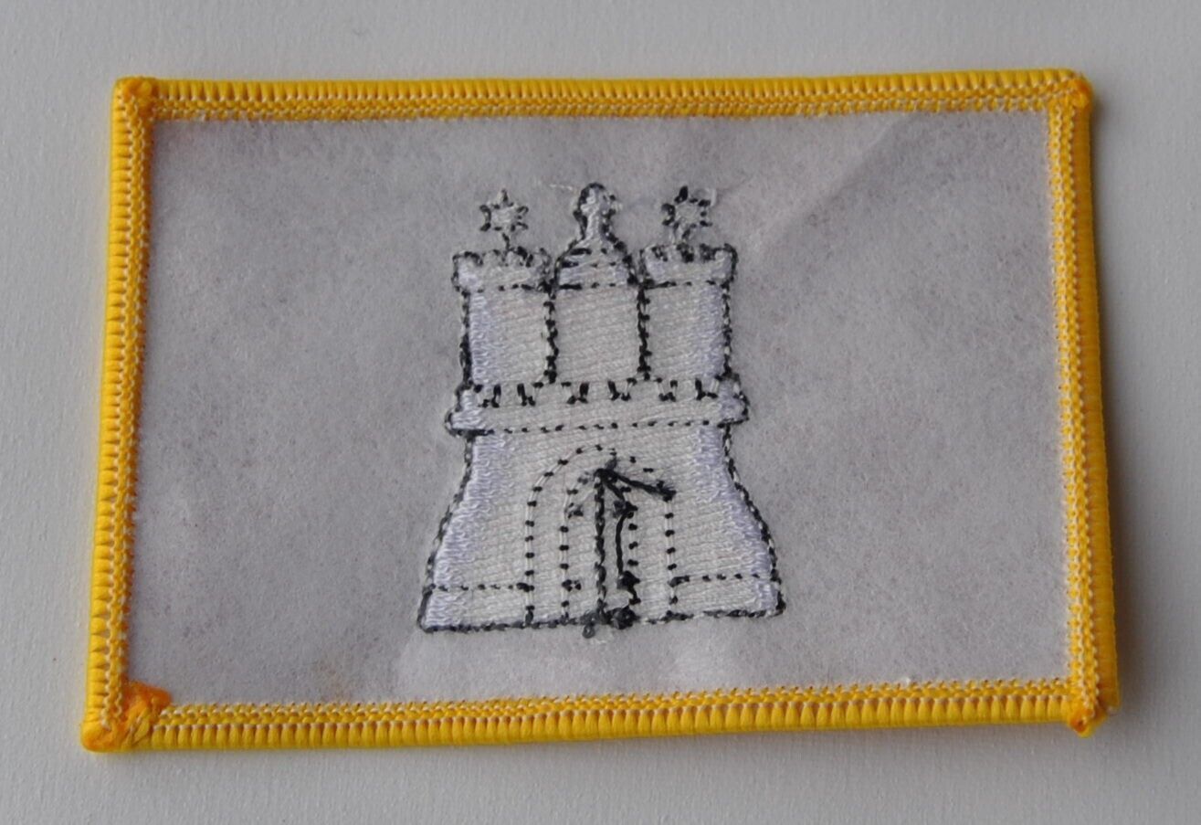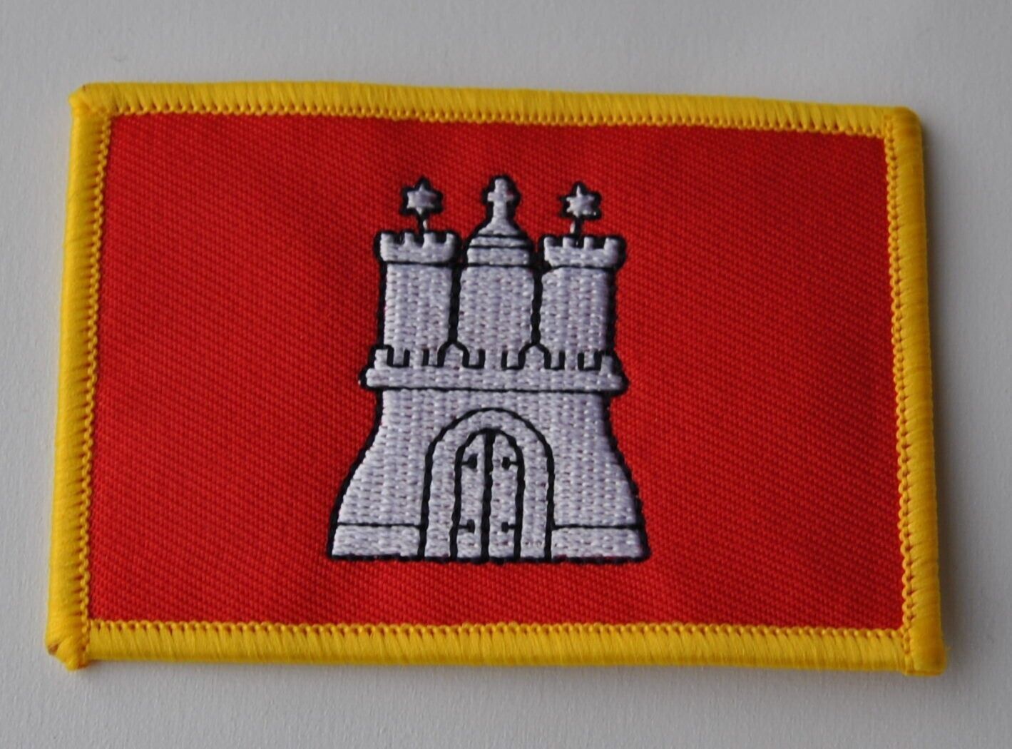 0272 Aufnäher Aufbügler Wappen Hamburg Aufnäher gestickt: Größe ca. 55 x 85 mm zum aufnähen oder auch zum aufbügeln Die Bilder zeigen vorder- und rückseite