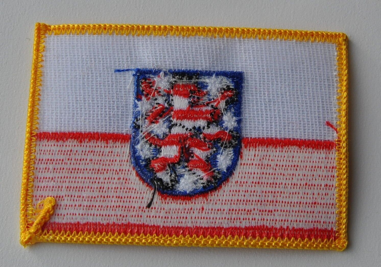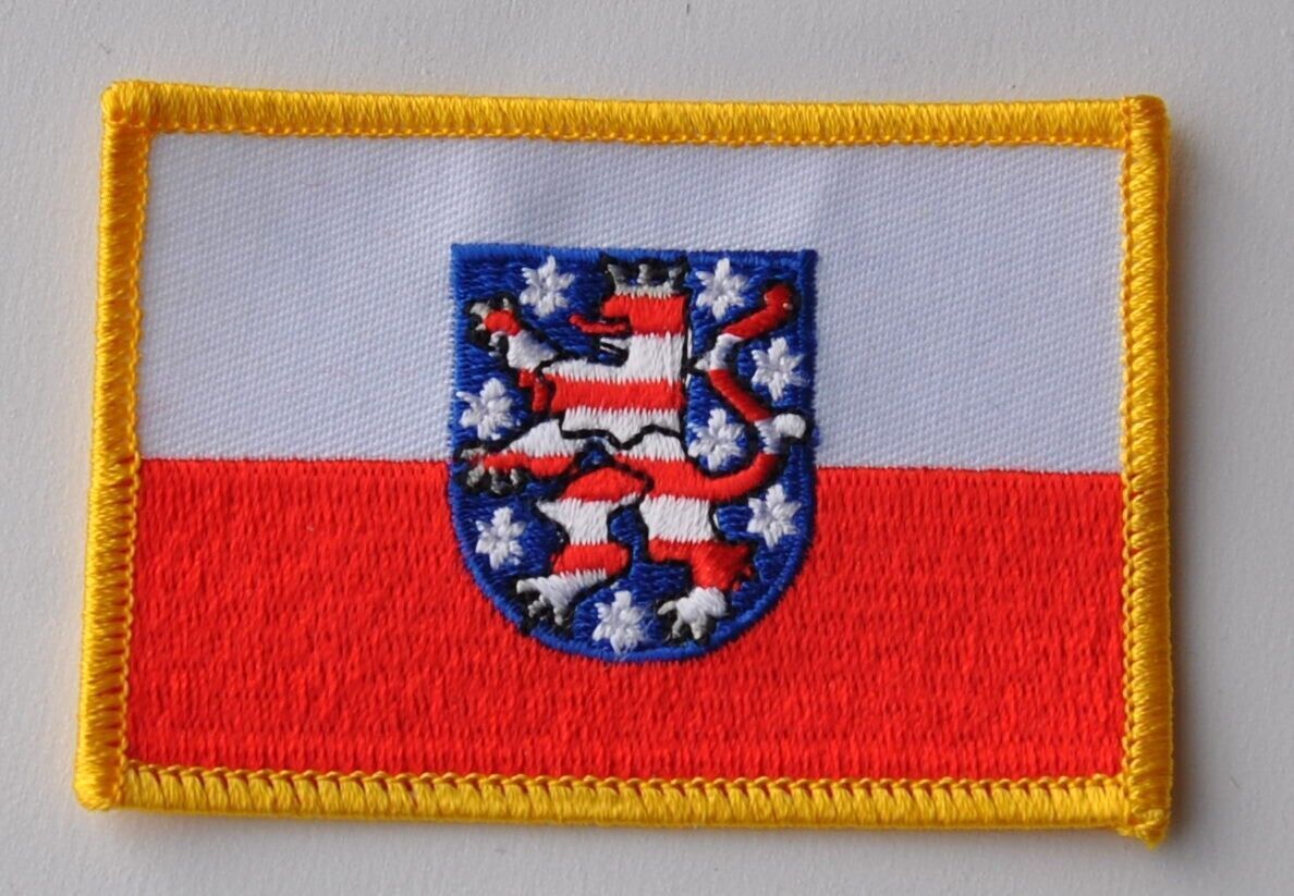 0283 Aufnäher Aufbügler Wappen Thüringen Aufnäher gestickt: Größe ca. 55 x 85 mm zum aufnähen oder auch zum aufbügeln Die Bilder zeigen vorder- und rückseite