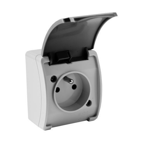 Aufputzsteckdosen IP44 Steckdose französisch System mit Klappdeckel grau