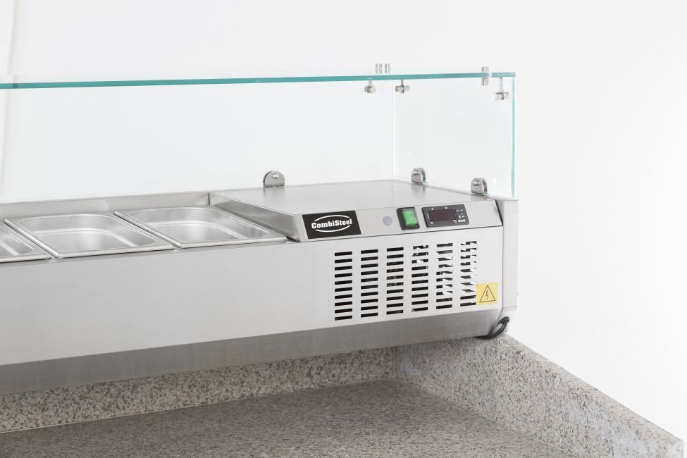 • Combisteel Aufsatzvitrine für 6 x 1/4 GN Behälter – Edelstahl, + 2/ + 8 °C