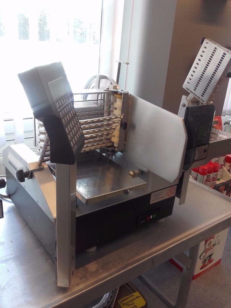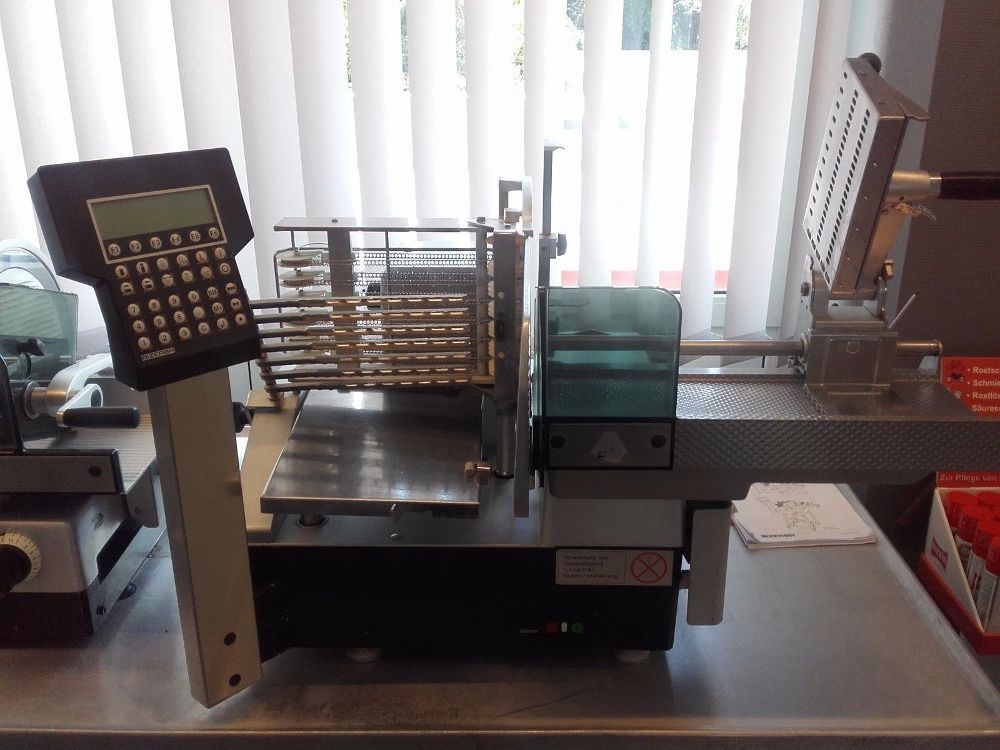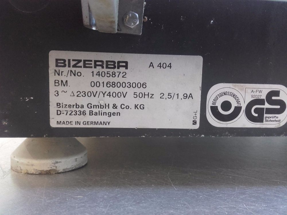 Vollautomat, Supermarkt - Bizerba Aufschnittmaschine A404 Wir bieten Ihnen hier eine gebrauchte Bizerba Aufschnittmaschine in gepflegtem Zustand an. Das Gehäuse ist aus Aluminium. Es handelt sich um einen Vollautomat. Sie können das Schnittgut als Turm, in Reihe oder kreisförmig von der Maschine auf