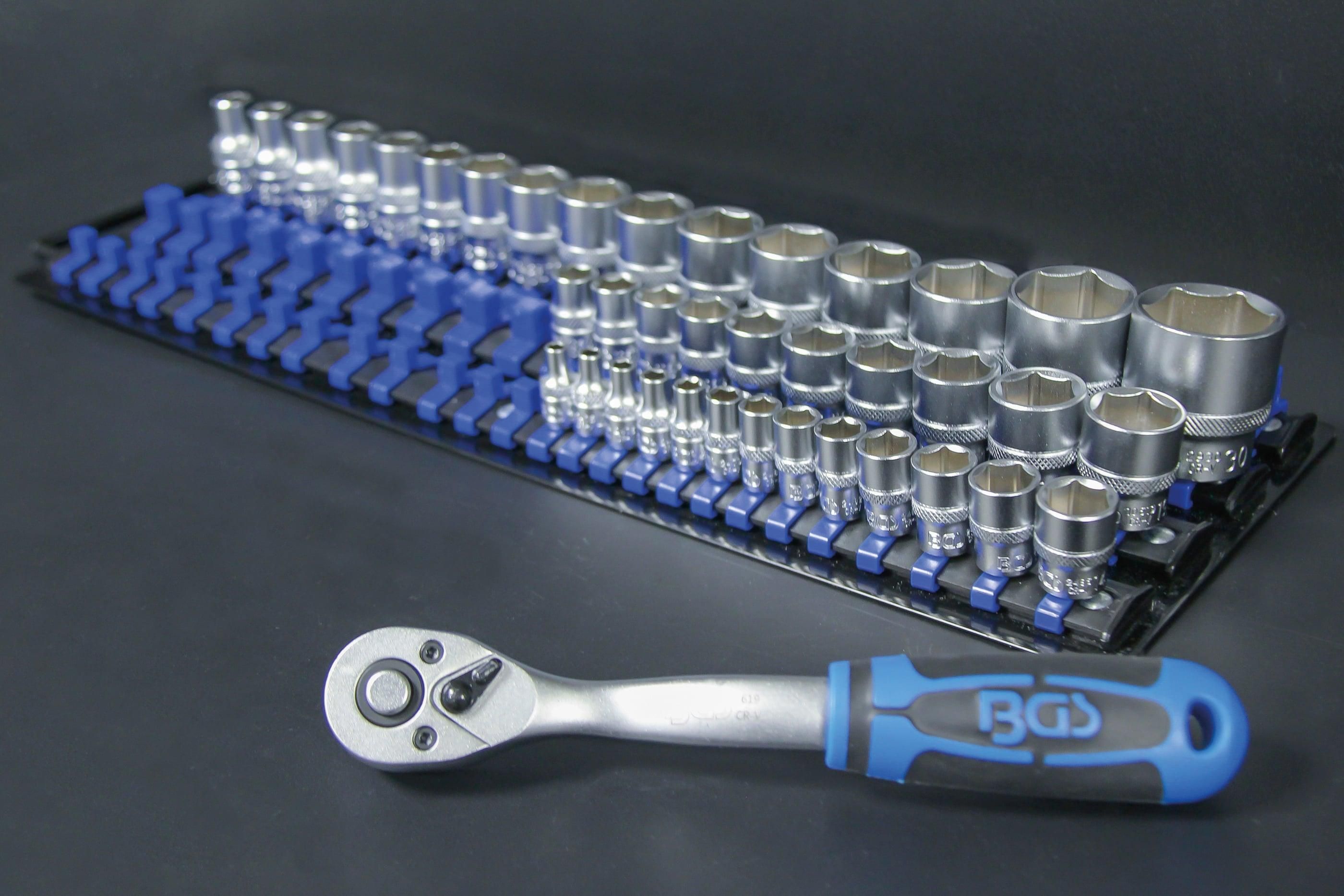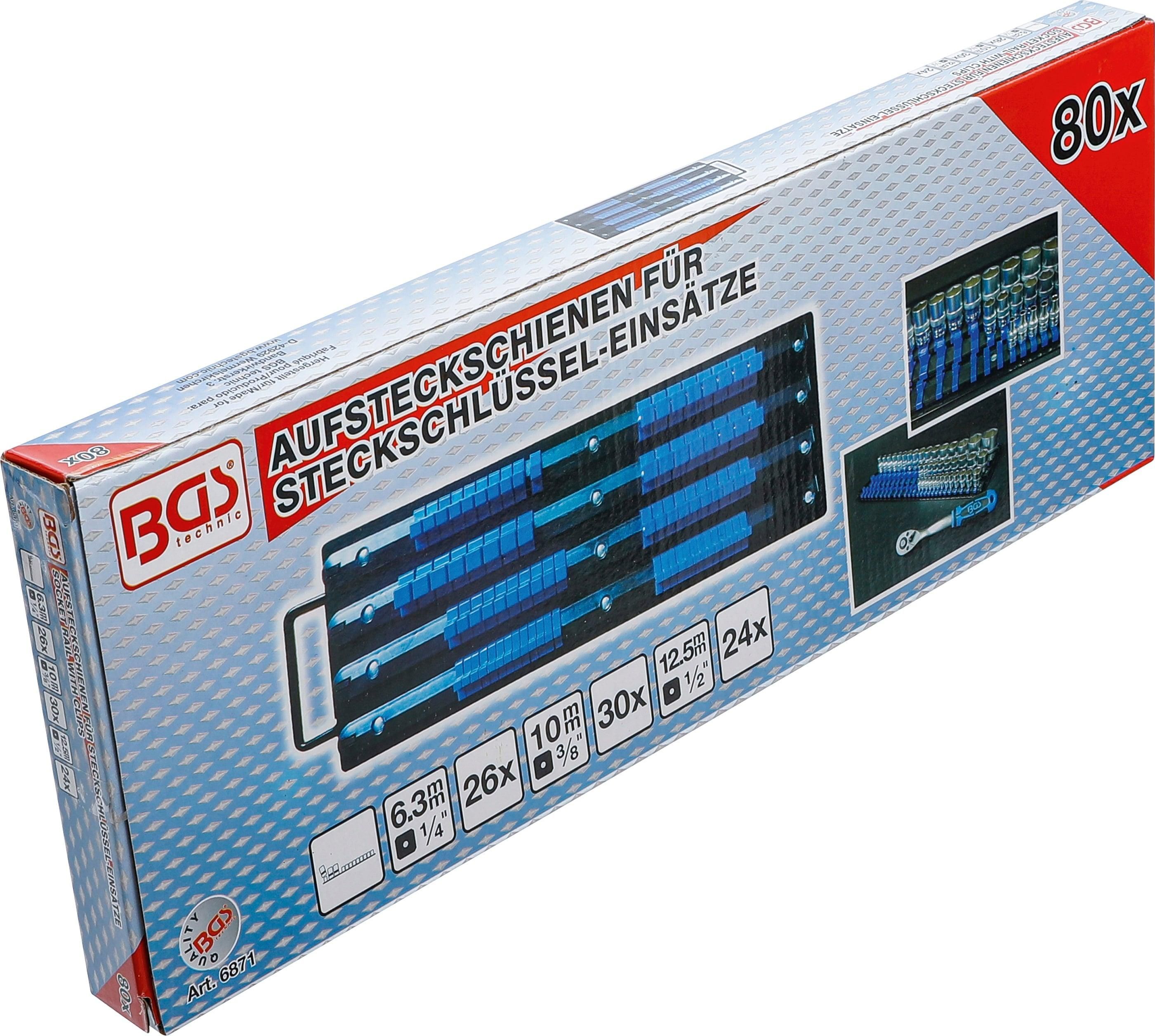 BGS Aufsteckschienen-Set für Steckschlüssel-Einsätze | mit 80 Clips | für Einsätze 6,3 m