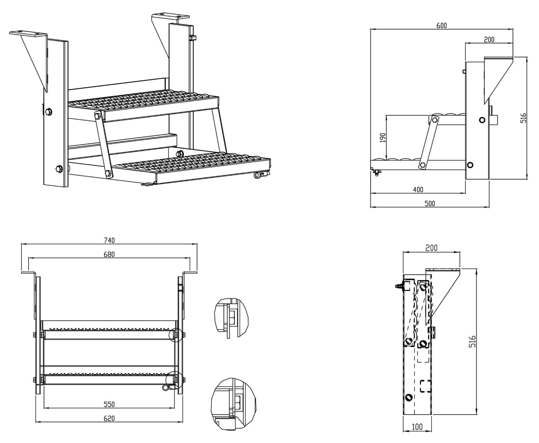 Aufstiegsleiter LKW Trittleiter klappbar mit 2 breiten Stufen - feuerverzinkt 109701
