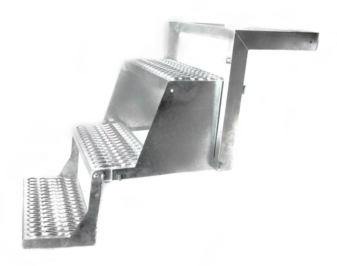 Aufstiegsleiter LKW Trittleiter klappbar mit 3 breiten Stufen - feuerverzinkt Aufstiegsleiter - klappbare 3-stufige Aufstiegshilfe - feuerverzinkt ********** Trittleiter ********** Sicherer Aufstieg durch 3 breite Stufen mit Graepel Profil Rutschhemmend Stahl feuerverzinkt Geringe Einbautiefe - nur