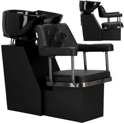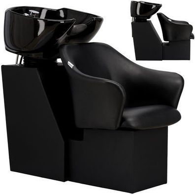 • Professionelle Friseurwaschanlage Berlin - Schwarz, Öko-Leder, Bequemer Sitz