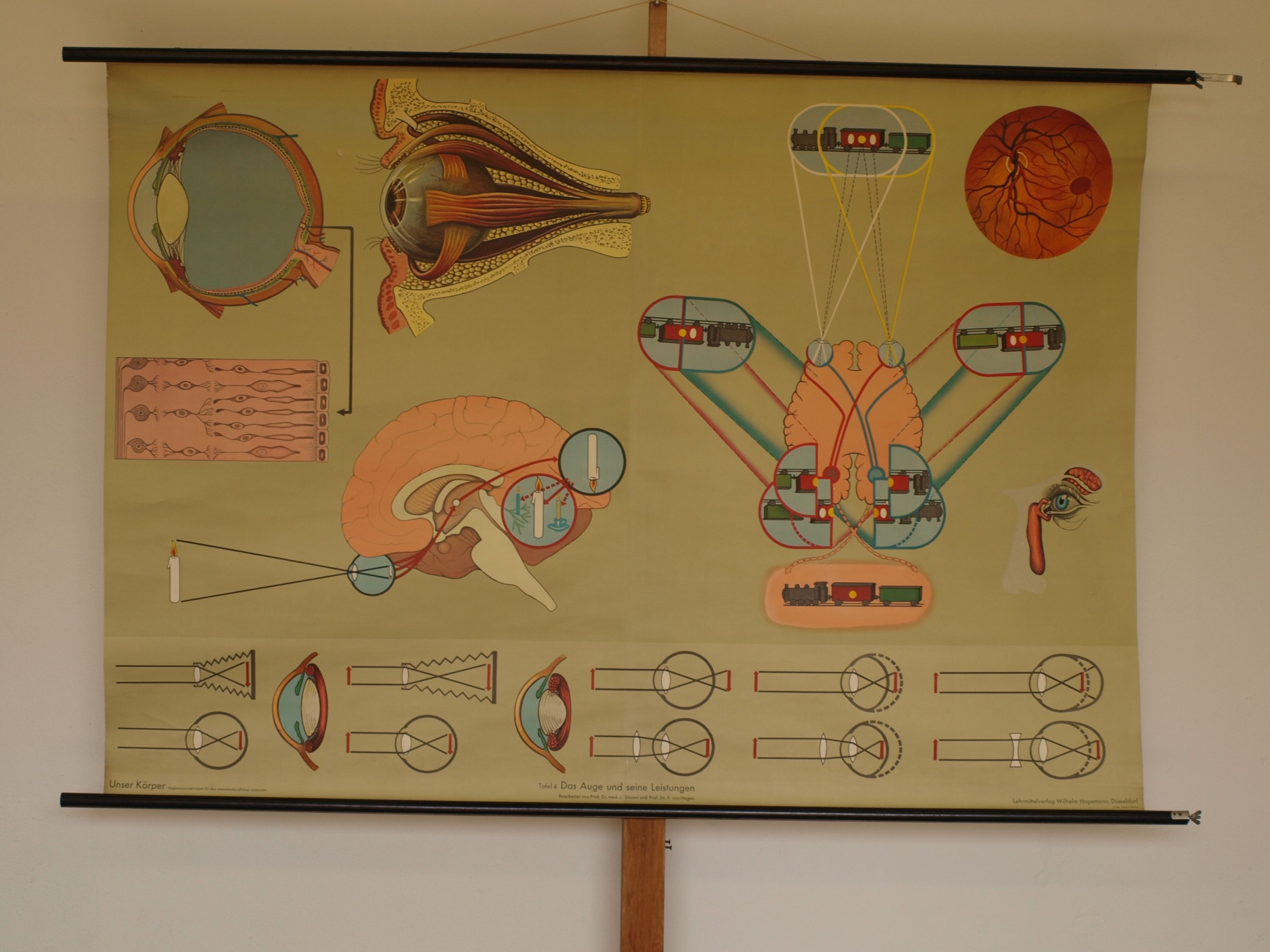 Auge Augenarzt Optiker Sehleistung Ausbildung Mediziner 1965 Wandbild 167x117cm NrL388 Unser Körper Tafel 4 Das Auge und seine Leistungen (KT573) Hagemann, 1965, 167x117cm plus Stäbe, fast sehr gut powered by plentymarkets