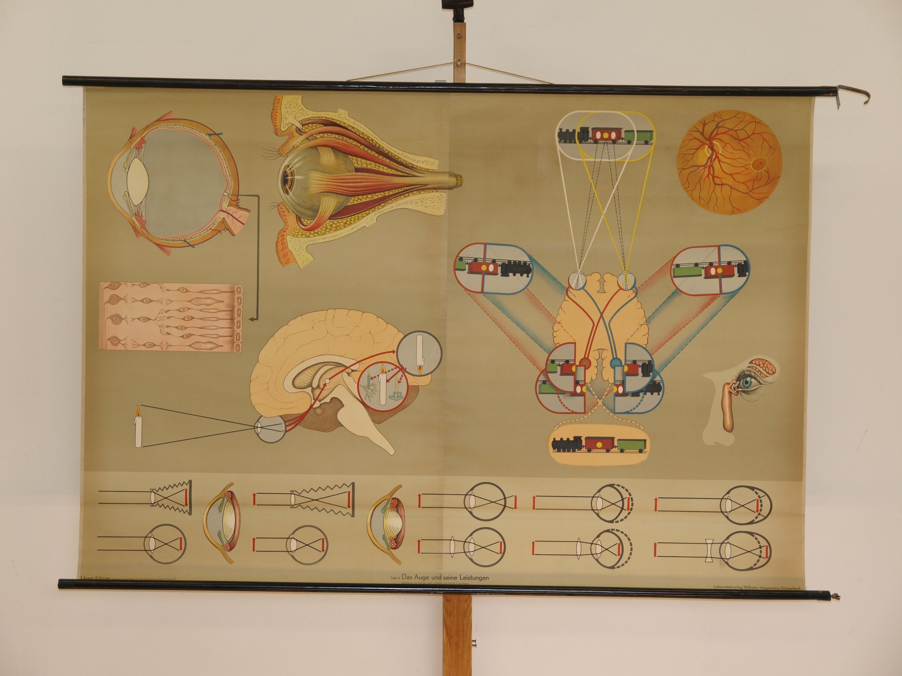 Auge Augenarzt Optiker Sehleistung Sehen Brille Blind 1965 Wandbild 167x116cm NrL388 Unser Körper Tafel 4 Das Auge und seine Leistungen (KW68) Hagemann, 1965, 167x116cm plus Stäbe, sehr gut powered by plentymarkets