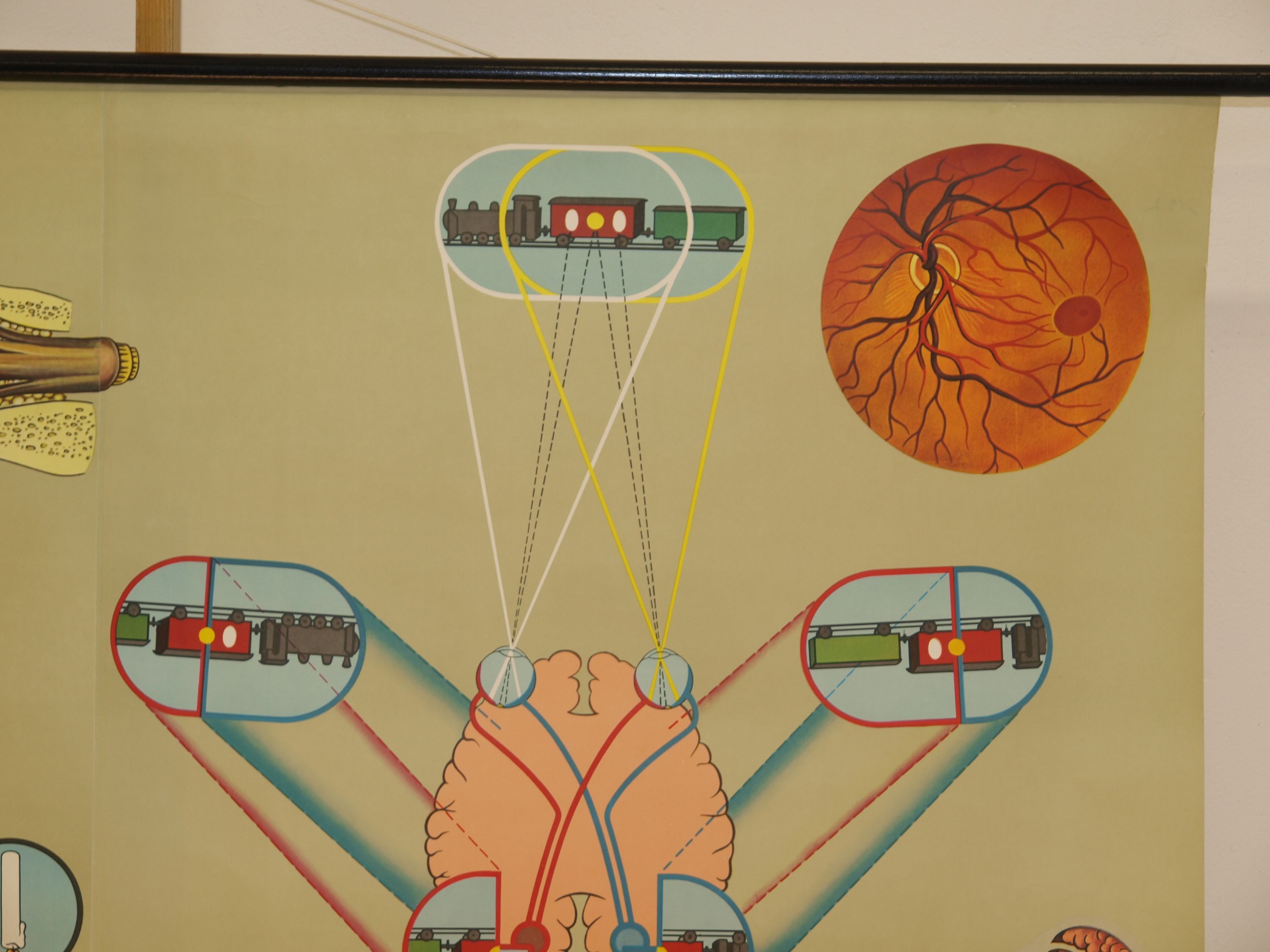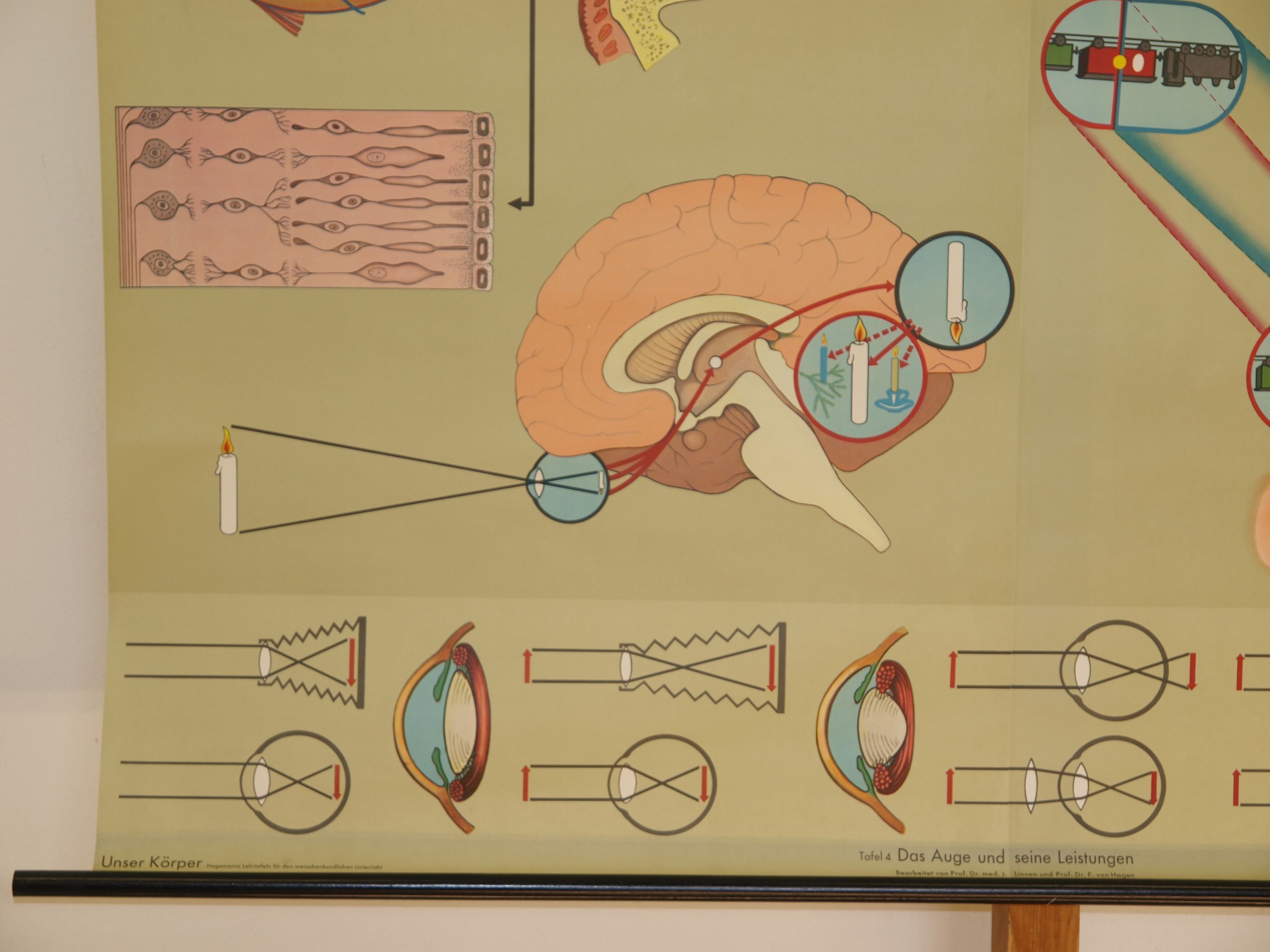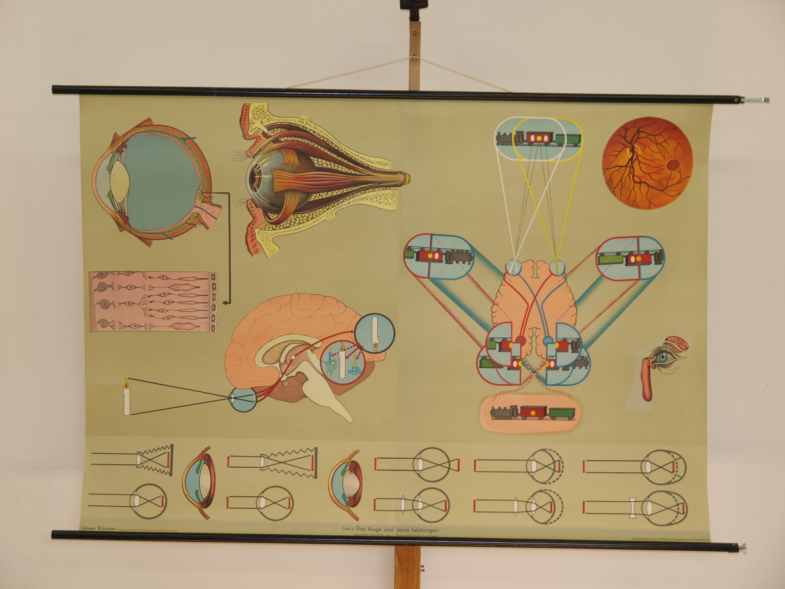 Auge Augenarzt Optiker Sehleistung Sehen Brille Blind 1965 Wandbild 167x117cm NrL388 Unser Körper Tafel 4 Das Auge und seine Leistungen (KW211) Hagemann, 1965, 167x117cm plus Stäbe, sehr gut powered by plentymarkets