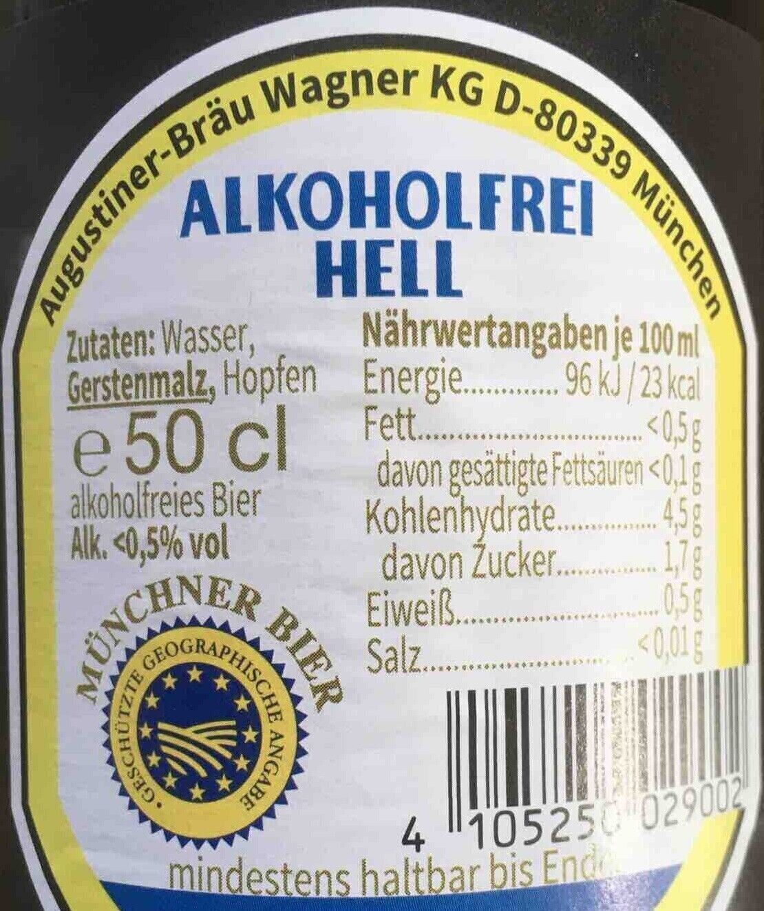 Augustiner Lagerbier Hell Alkoholfrei - Mehrweg-Pfand 0,50 Liter Flasche
