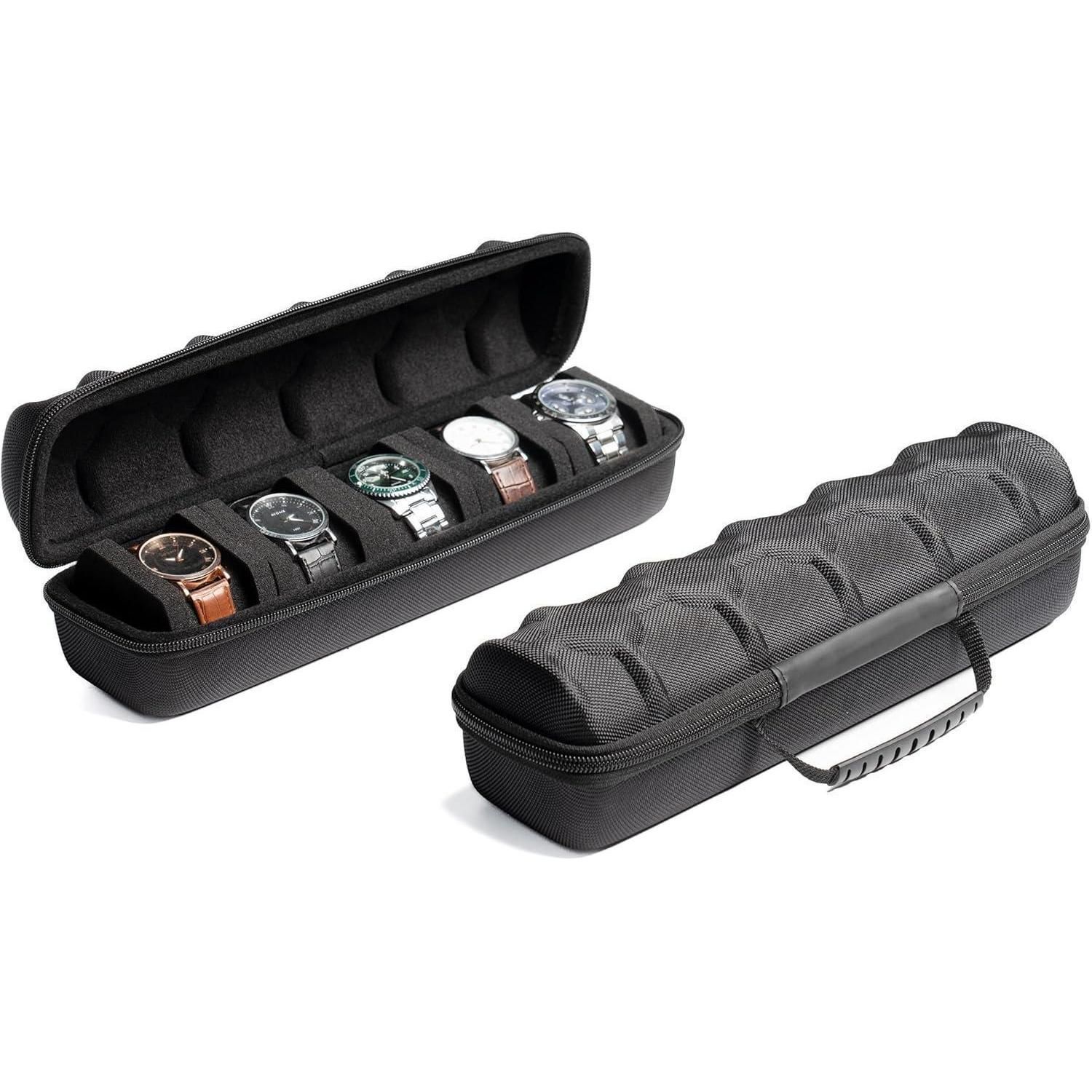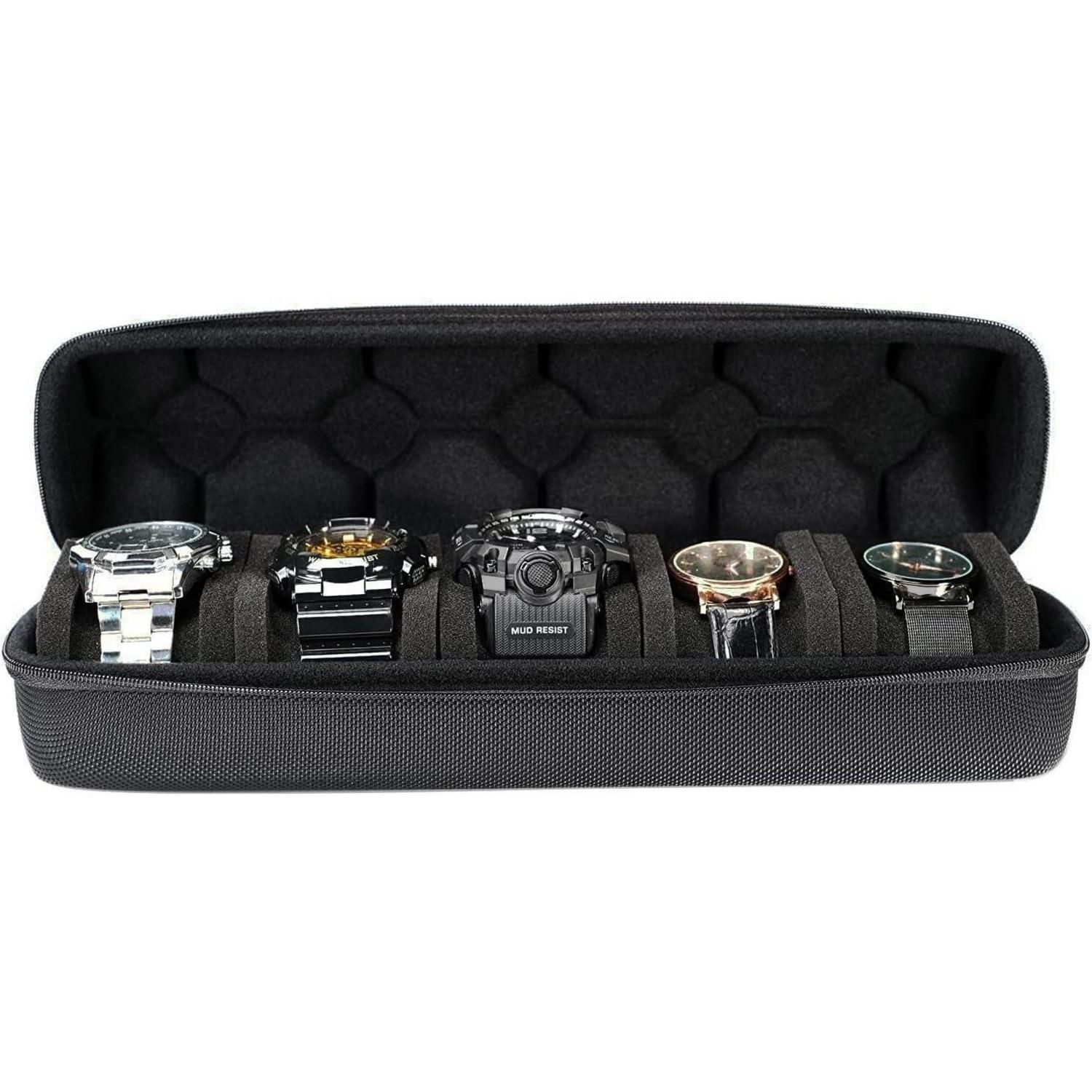 AUKURA Hartes Uhrenetui 5 Fächer Organizer Damen Herren Schwarzer Stoff