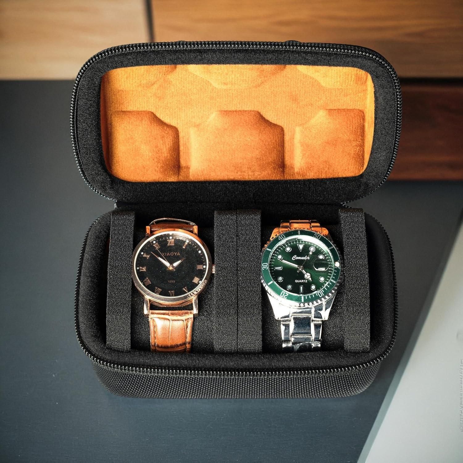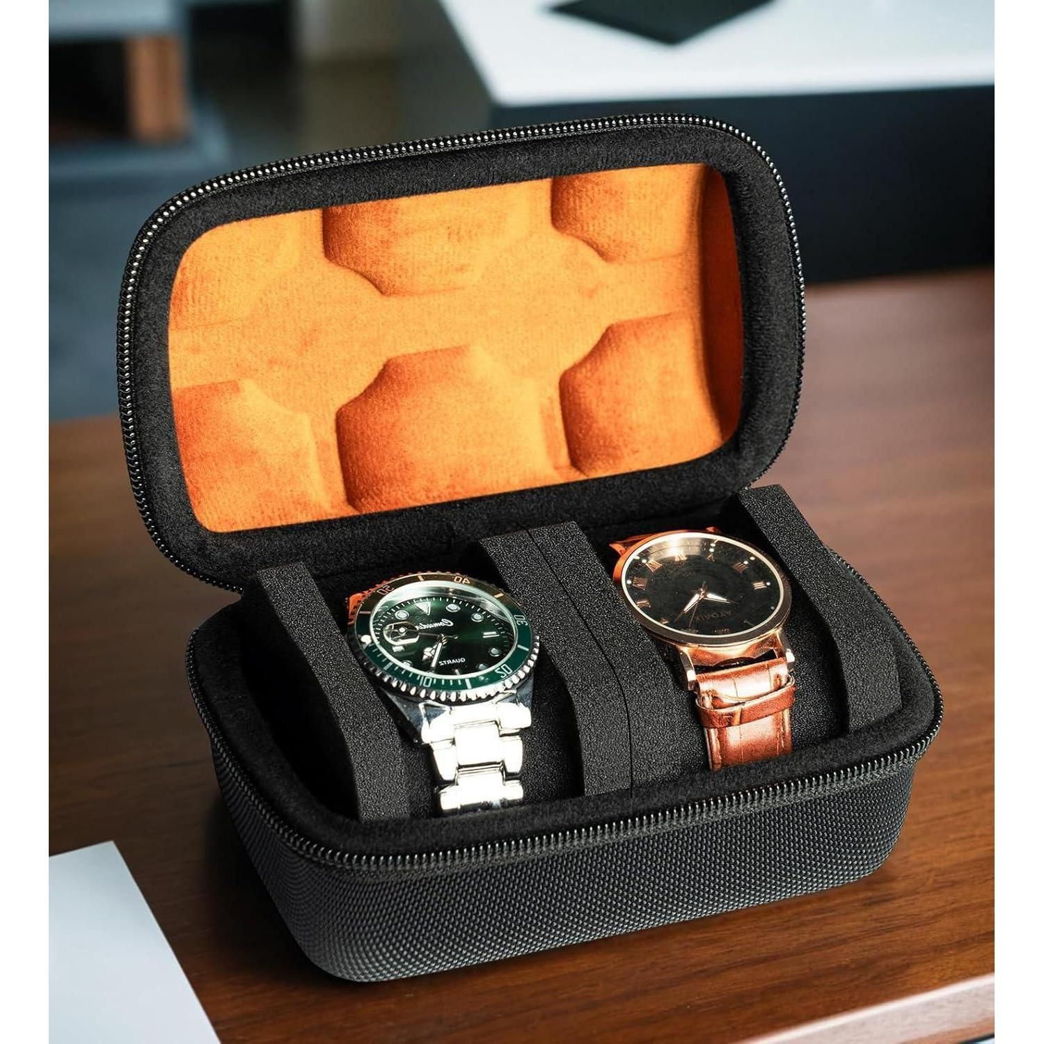 AUKURA Reise-Etui Herren Organizer für große Uhren 2 Schlitze