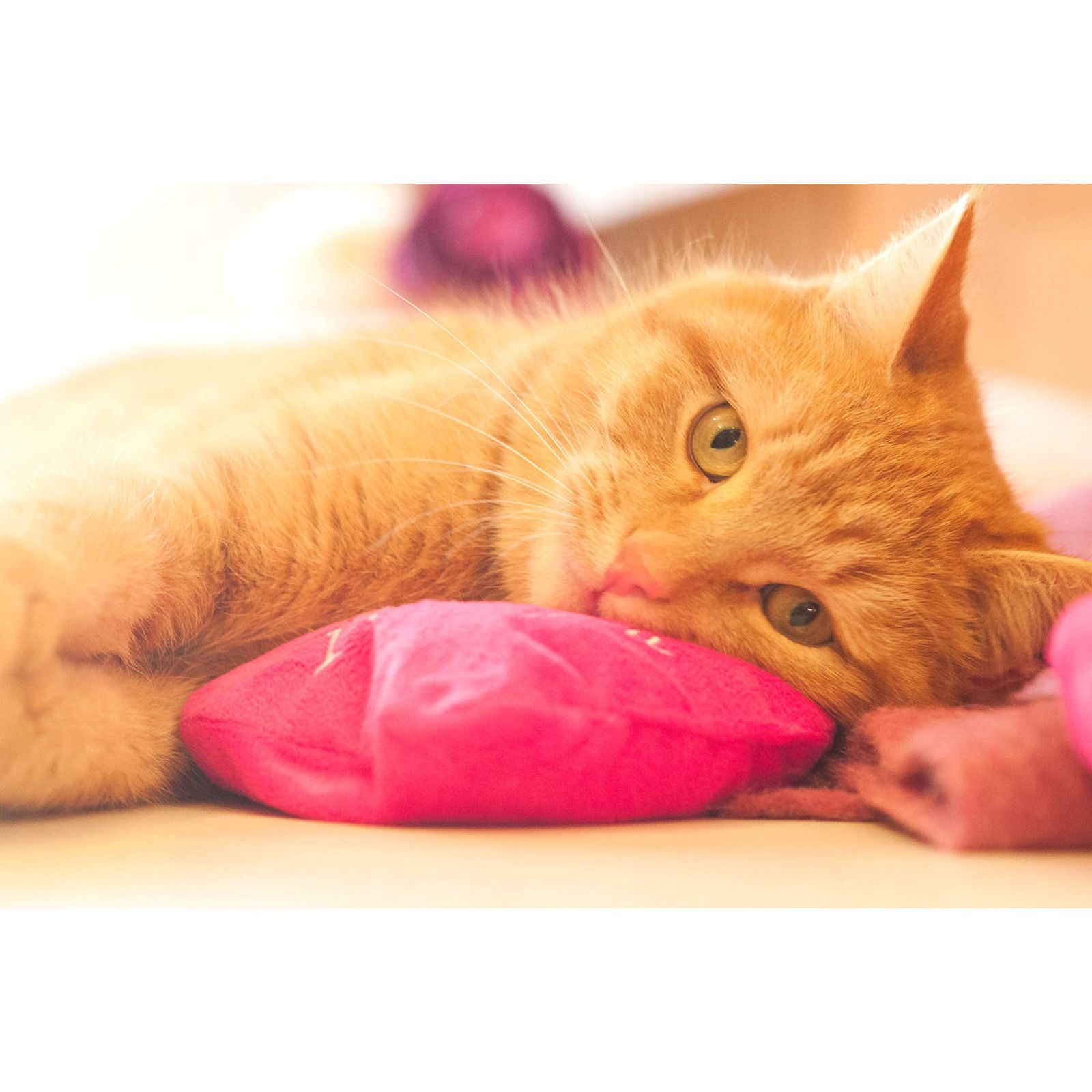 Aumüller Aumüller Katzenspielkissen I Love You-Herz aus pinkem Schmuseplüsch - gefüllt mit