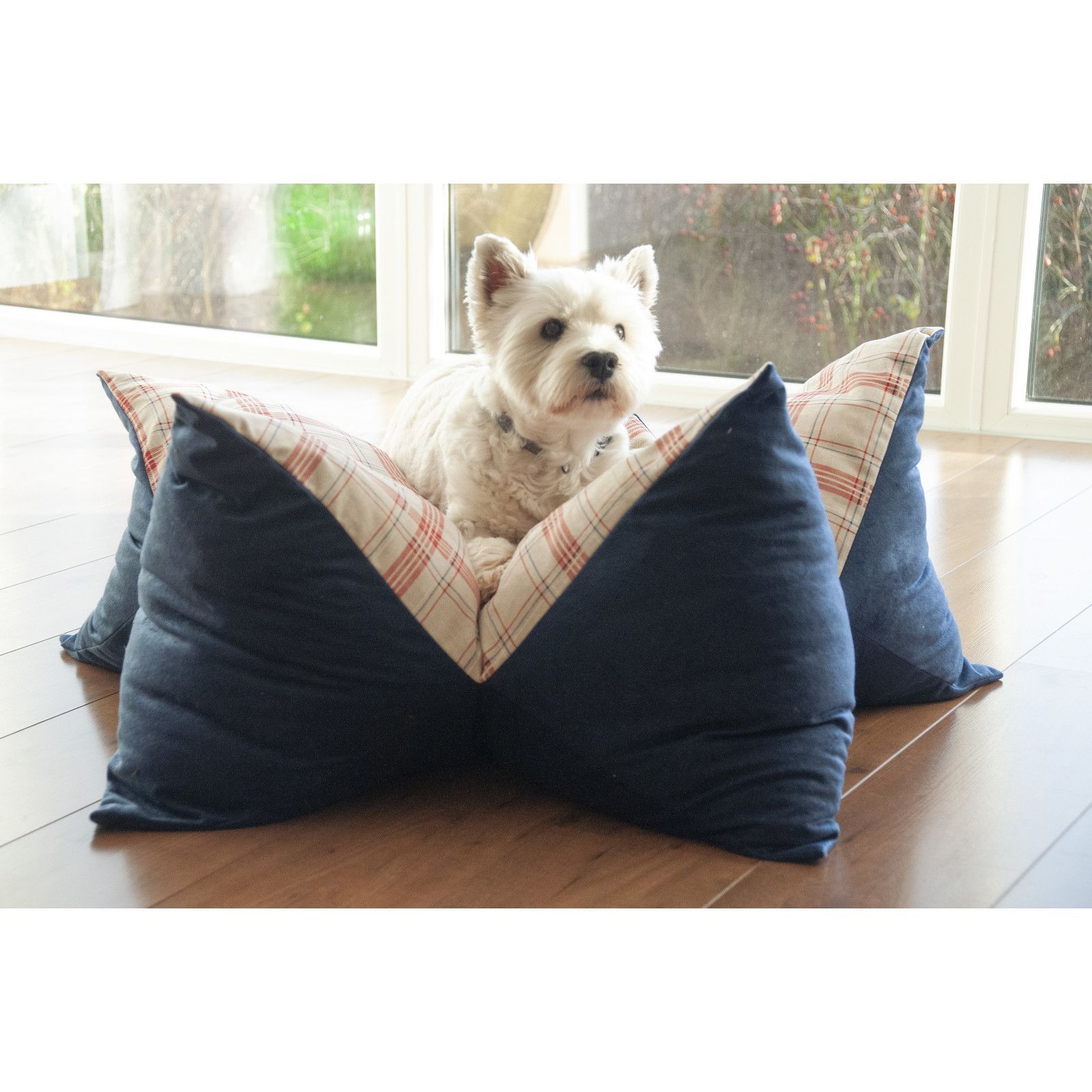 Aumüller Aumüller Sternenkissen Karo, Beige / Blau - 85 cm - Liegekissen für Hunde und Katzen