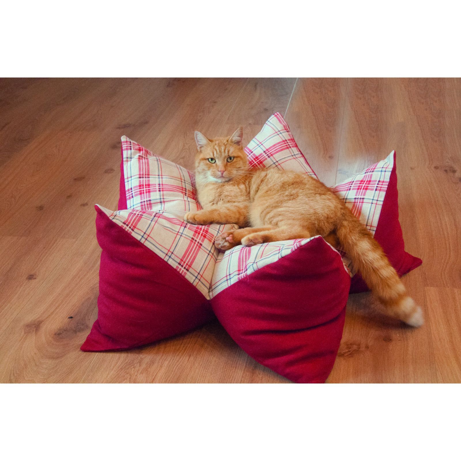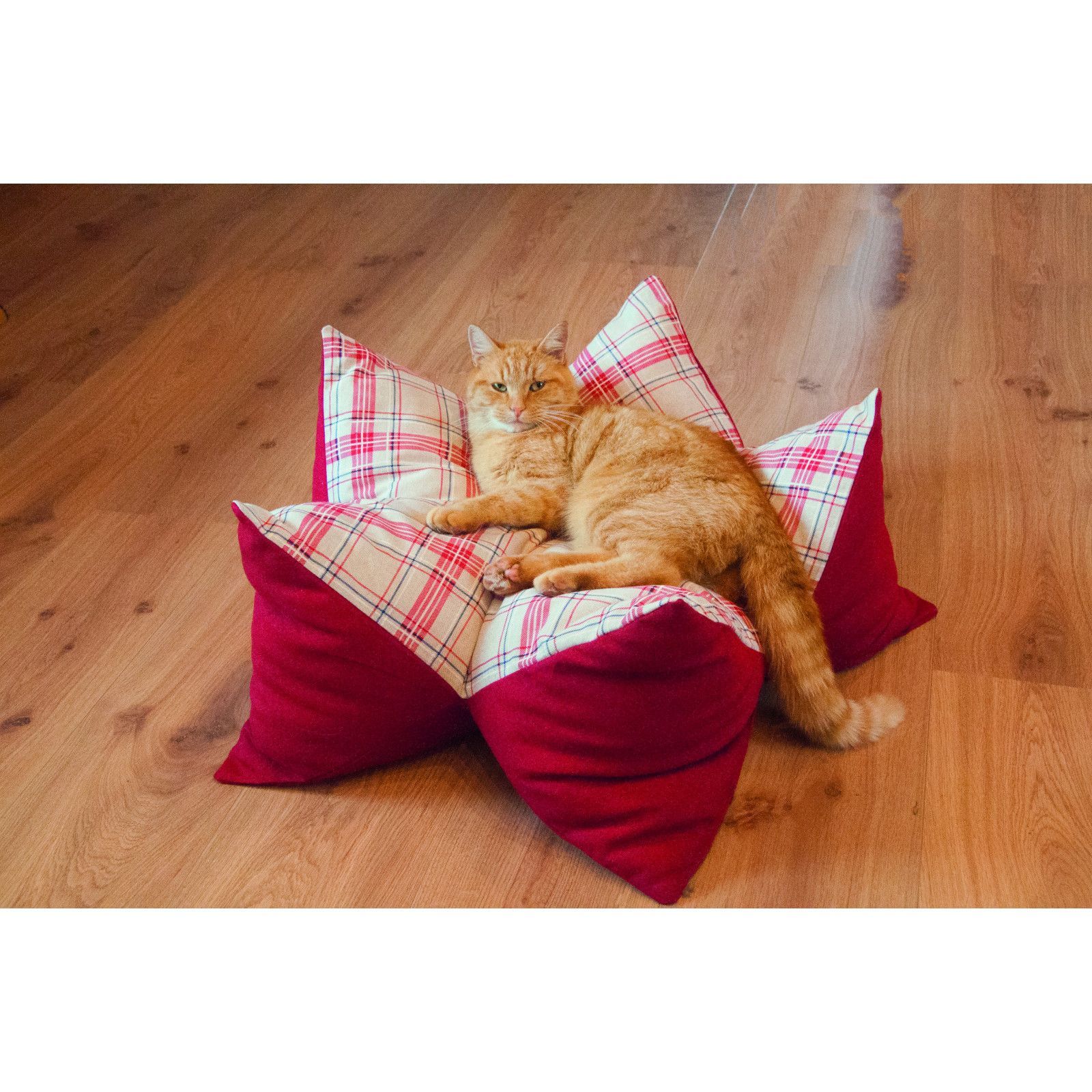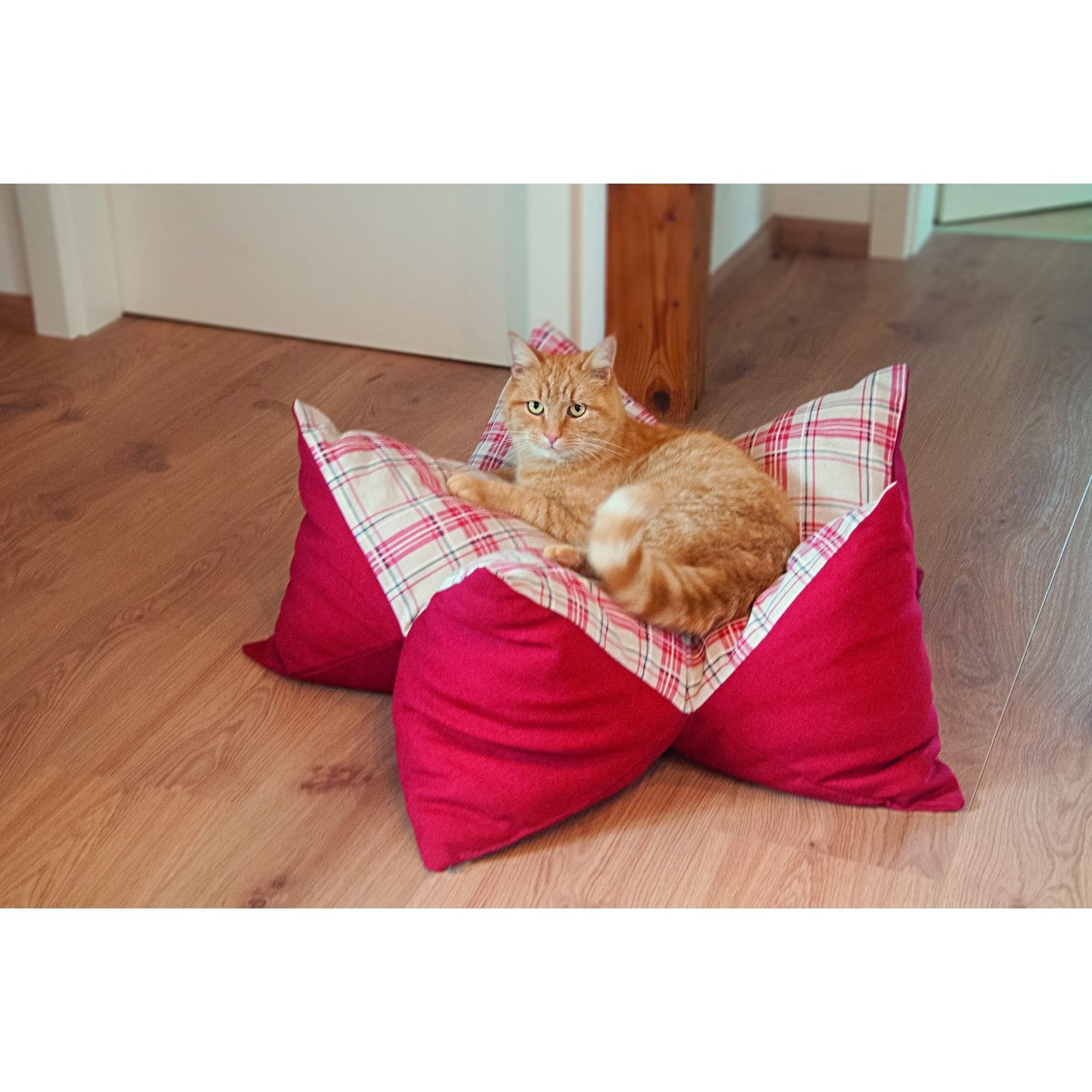 Aumüller Aumüller Sternenkissen Karo, Beige / Rot - 85 cm - Liegekissen für Hunde und Katzen