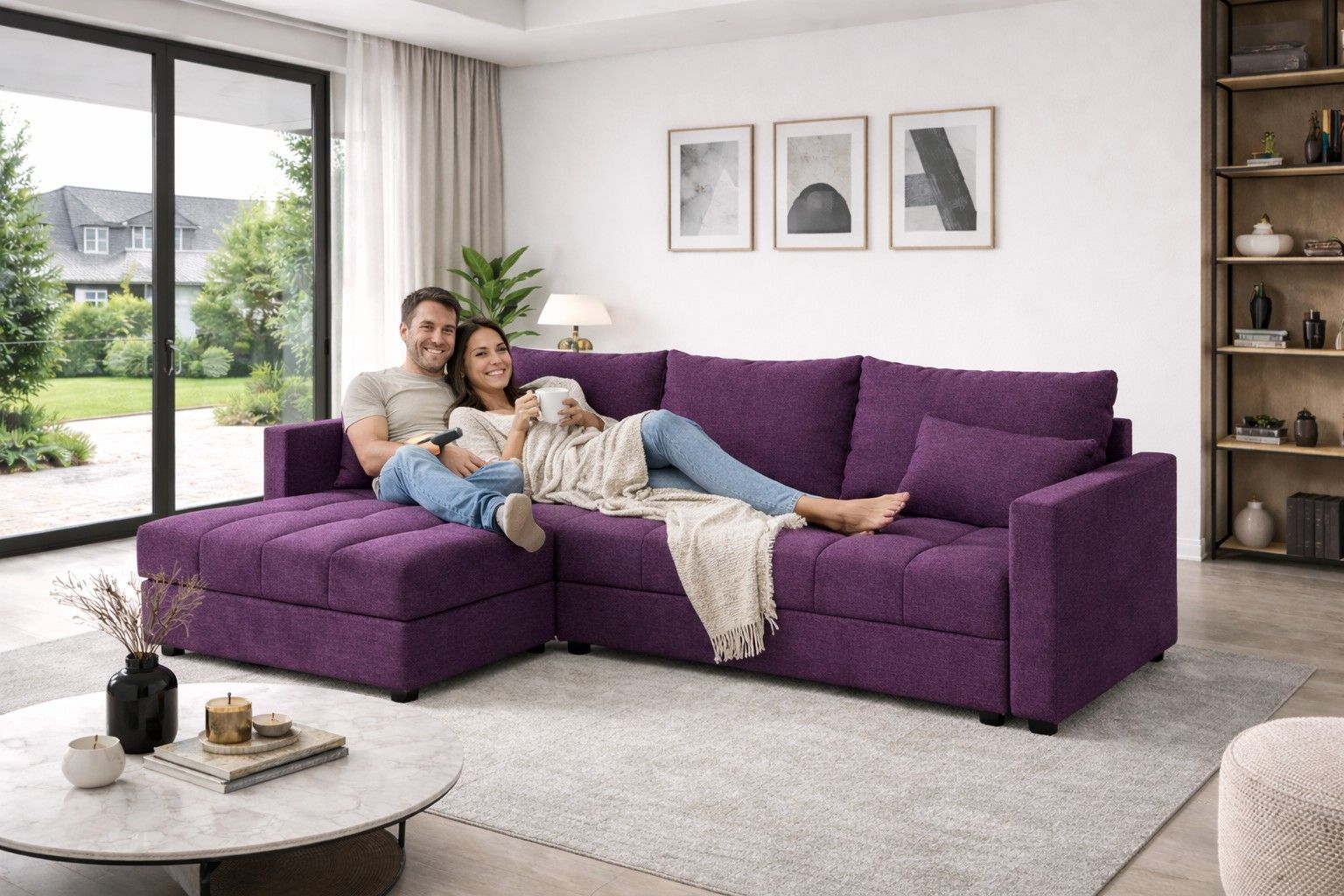 Aurelia U Wohnlandschaft Ecksofa in L-Form mit Schlaffunktion, Bettkasten und Kissen