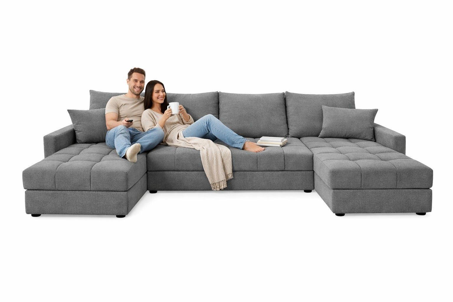 Aurelia U Wohnlandschaft Ecksofa in U-Form mit Schlaffunktion, Bettkasten und Kissen