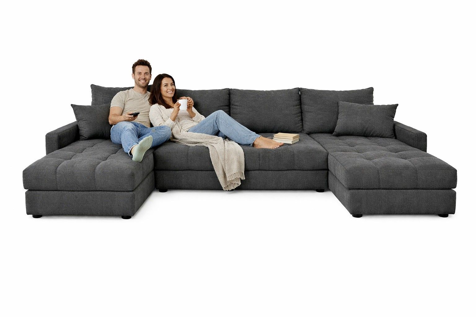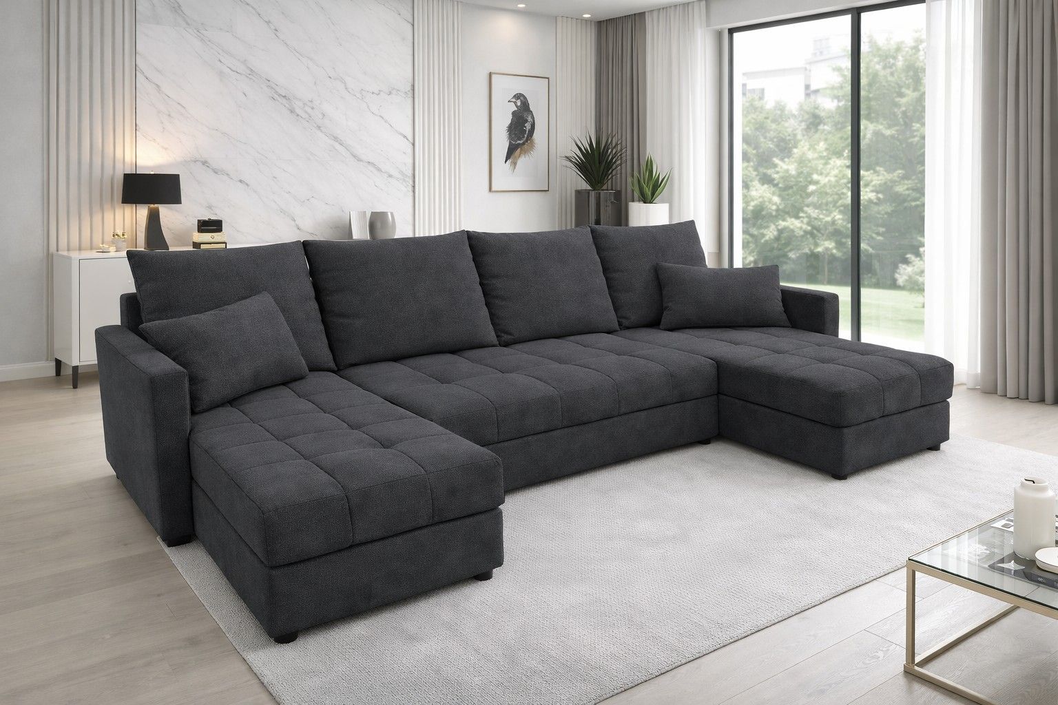 Aurelia U Wohnlandschaft Ecksofa in U-Form mit Schlaffunktion, Bettkasten und Kissen