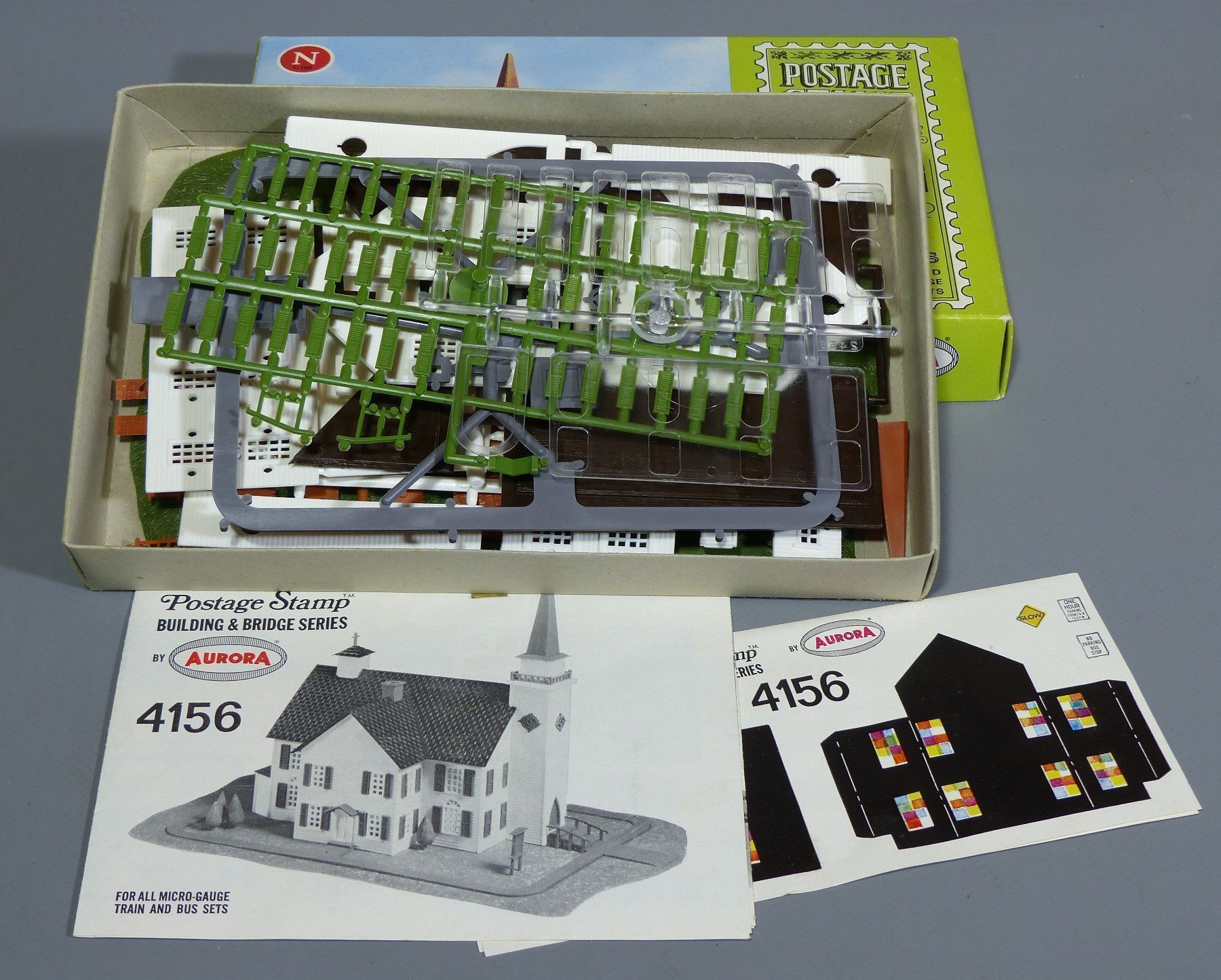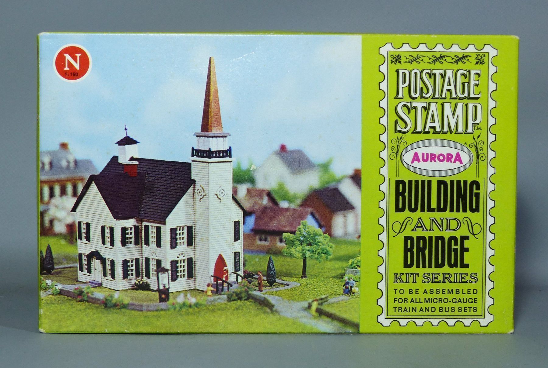 Aurora Gebäude Bausatz für Spur N Ein original Bausatz aus den 60er Jahren Nr. 4156-250 - Church Kirche im US-Stil Der Bausatz ist identisch zu Faller 2256 Der Bausatz ist KOMPLETT und NEU in OVP ! Für weitere Bilder oder Fragen zum Artikel kontaktieren Sie mich ! Ich nehme jederzeit realistische Pr
