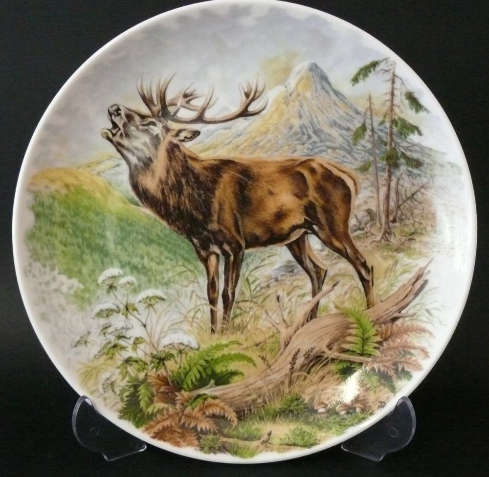 Ausgefallene Hirsche Geweihträger im Wald AK Kaiser Porzellan Wandteller Sammelteller