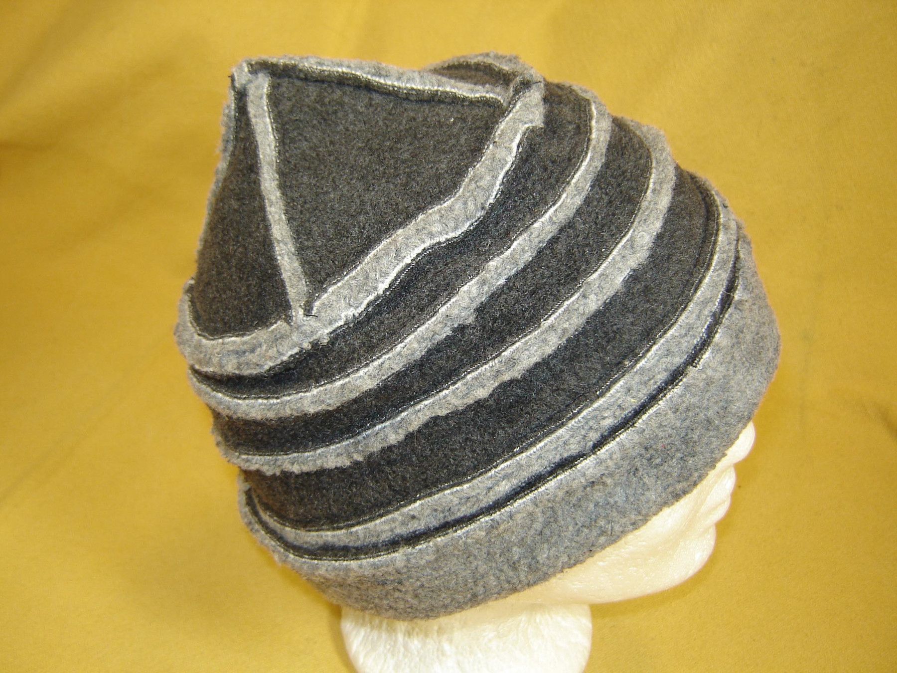 ausgefallene Kindermütze dicker Fleece hellgrau und dunkelgrau mit Sichtnähten