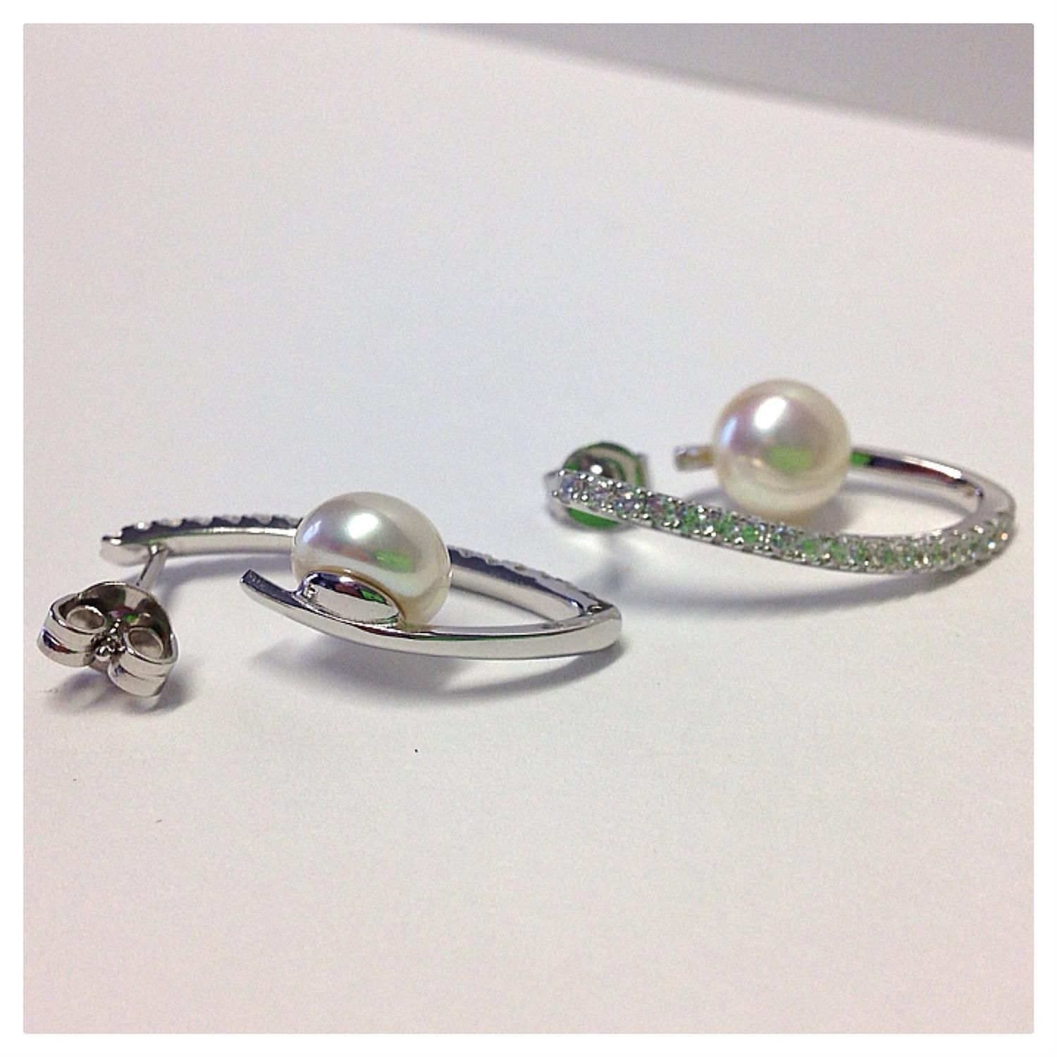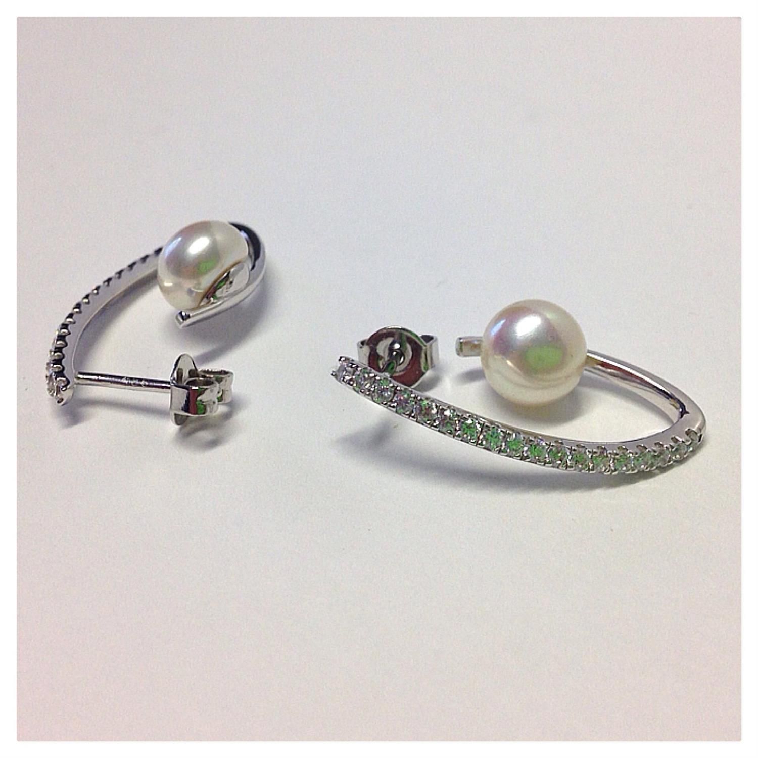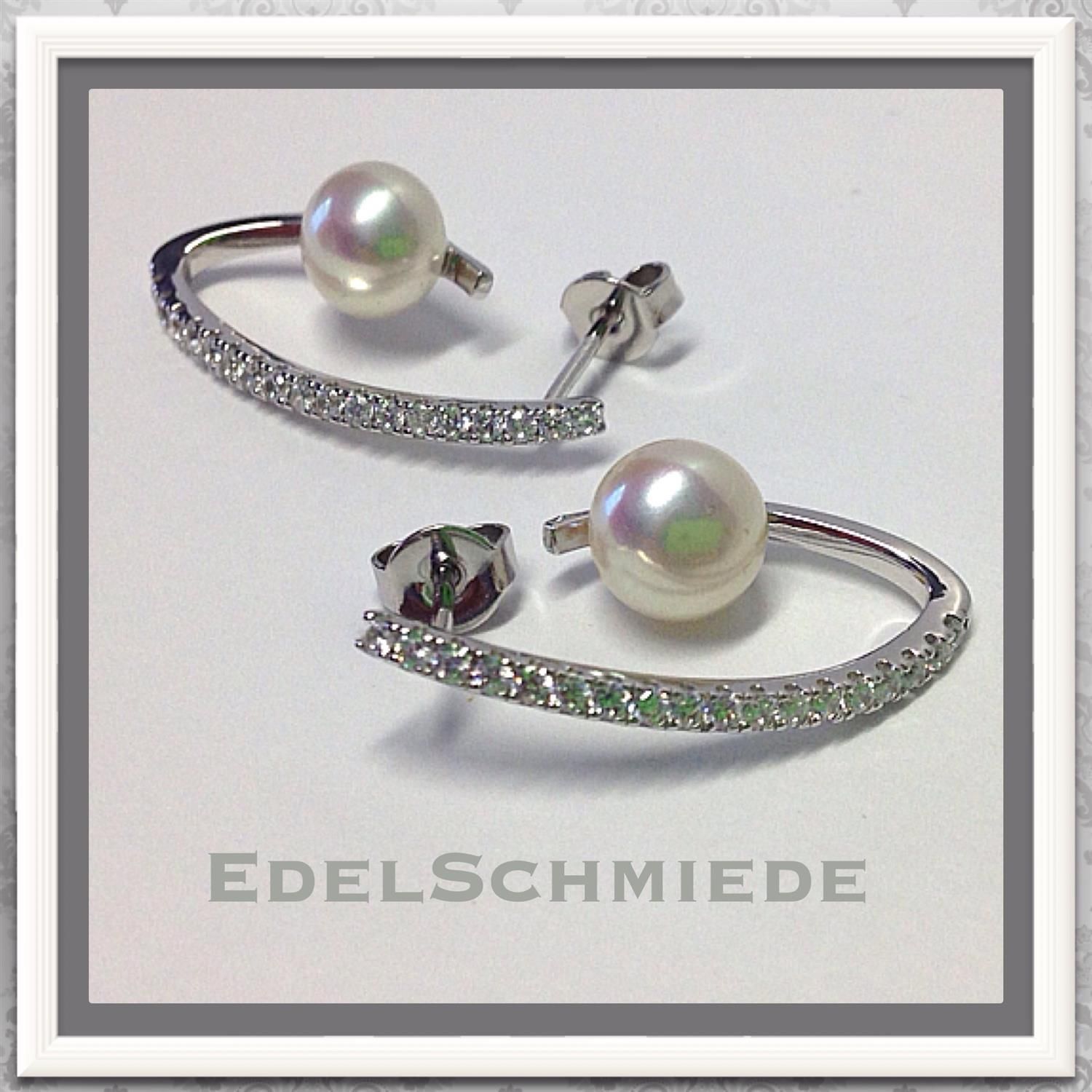 ausgefallene Ohrstecker mit Perle u Zirk. 925 Silb