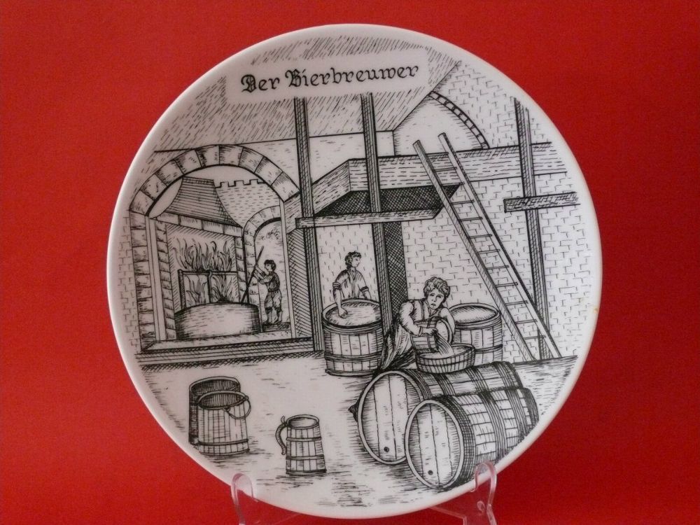 Ausgefallene Wandteller Sammelteller Zierteller Der Bierbreuwer von König Pilsener Besonderes: Der Bierbreuwer (Bierbrauer), aus Jost Ammans Ständebuch (1568) Motiv : Der Bierbreuwer (Bierbrauer) Hersteller Bodenmarke: König Pilsener Boden Schrift Farbe: Silber Boden Nummeriert oder Geprägt: Teller