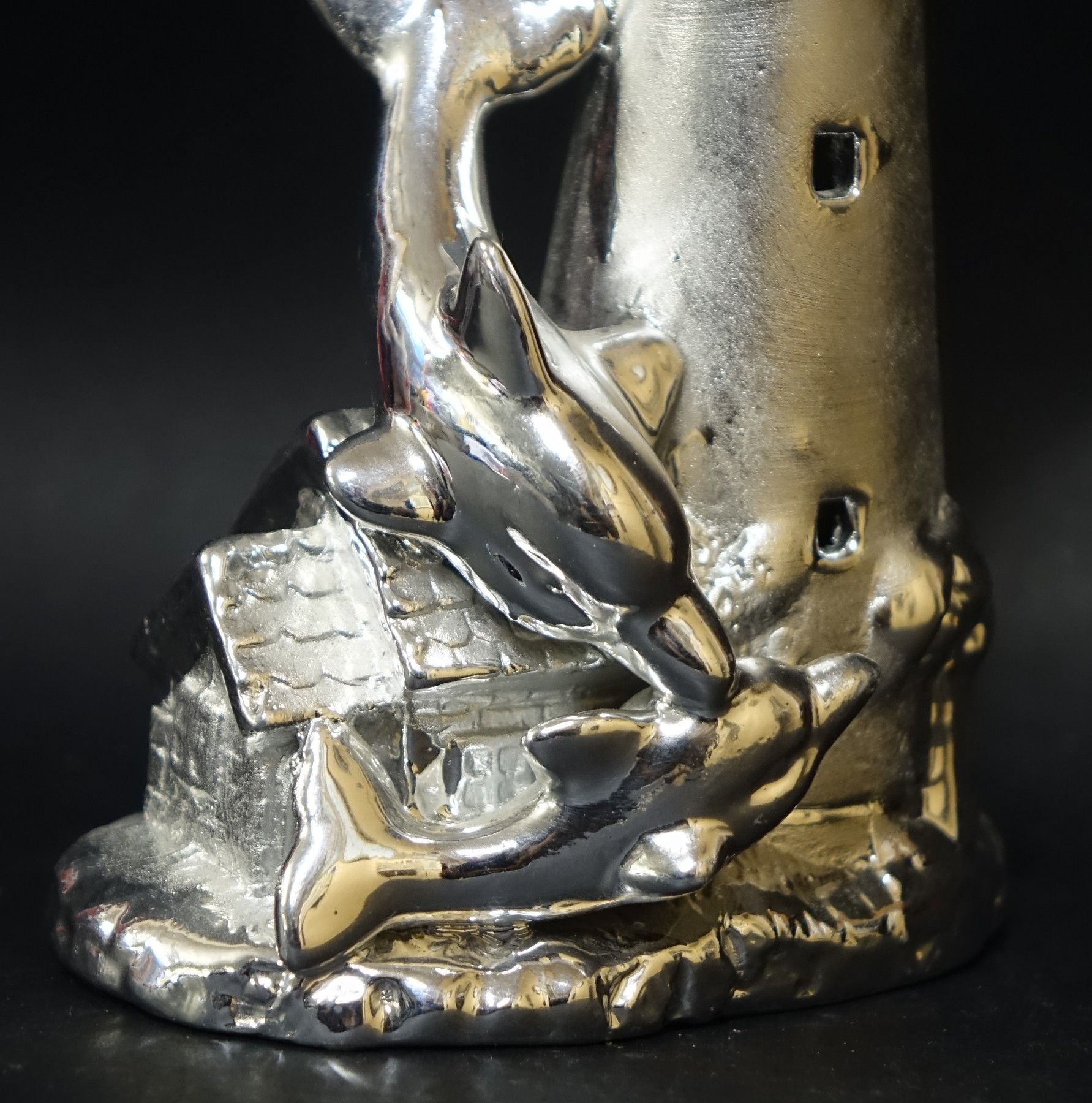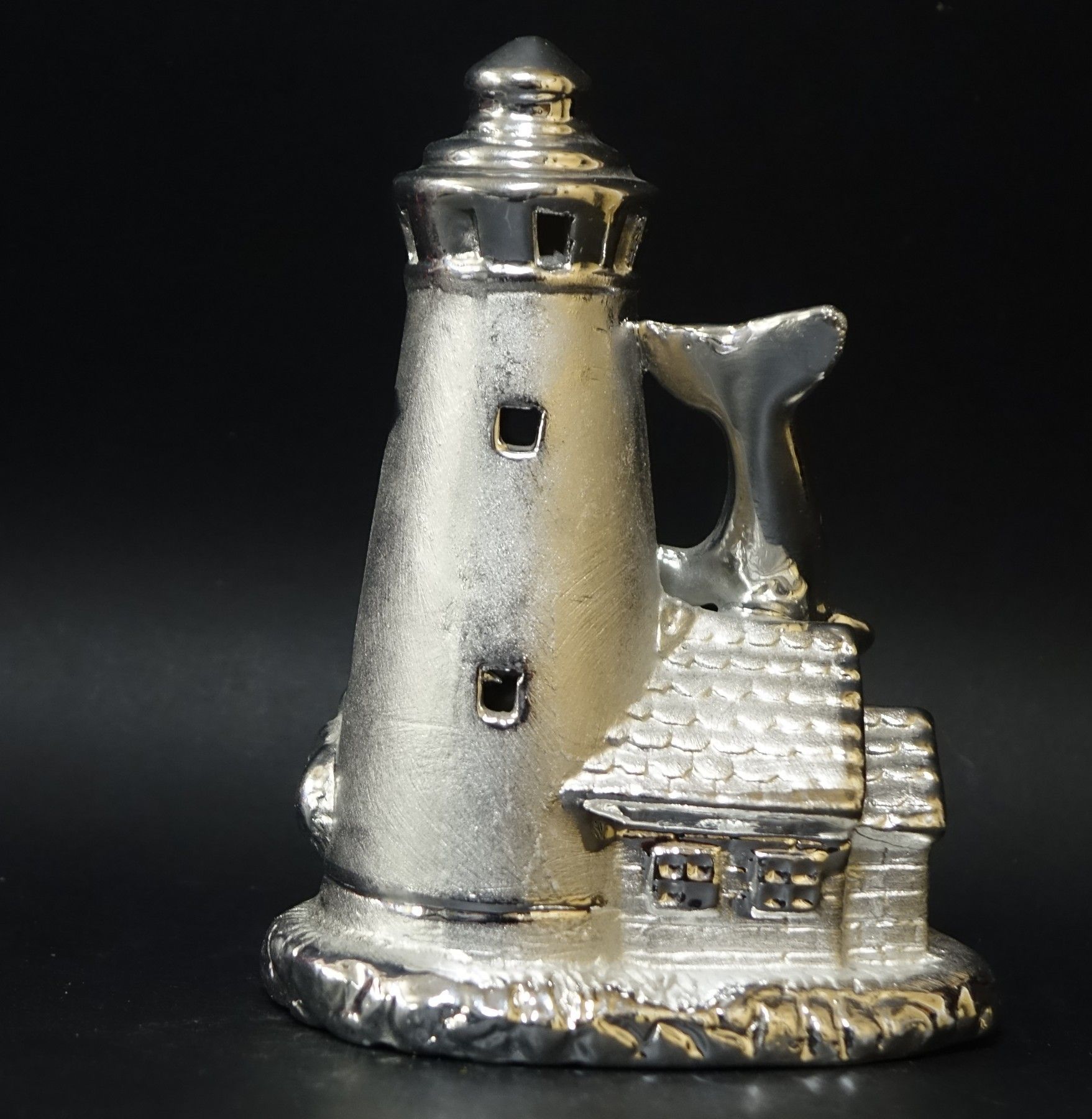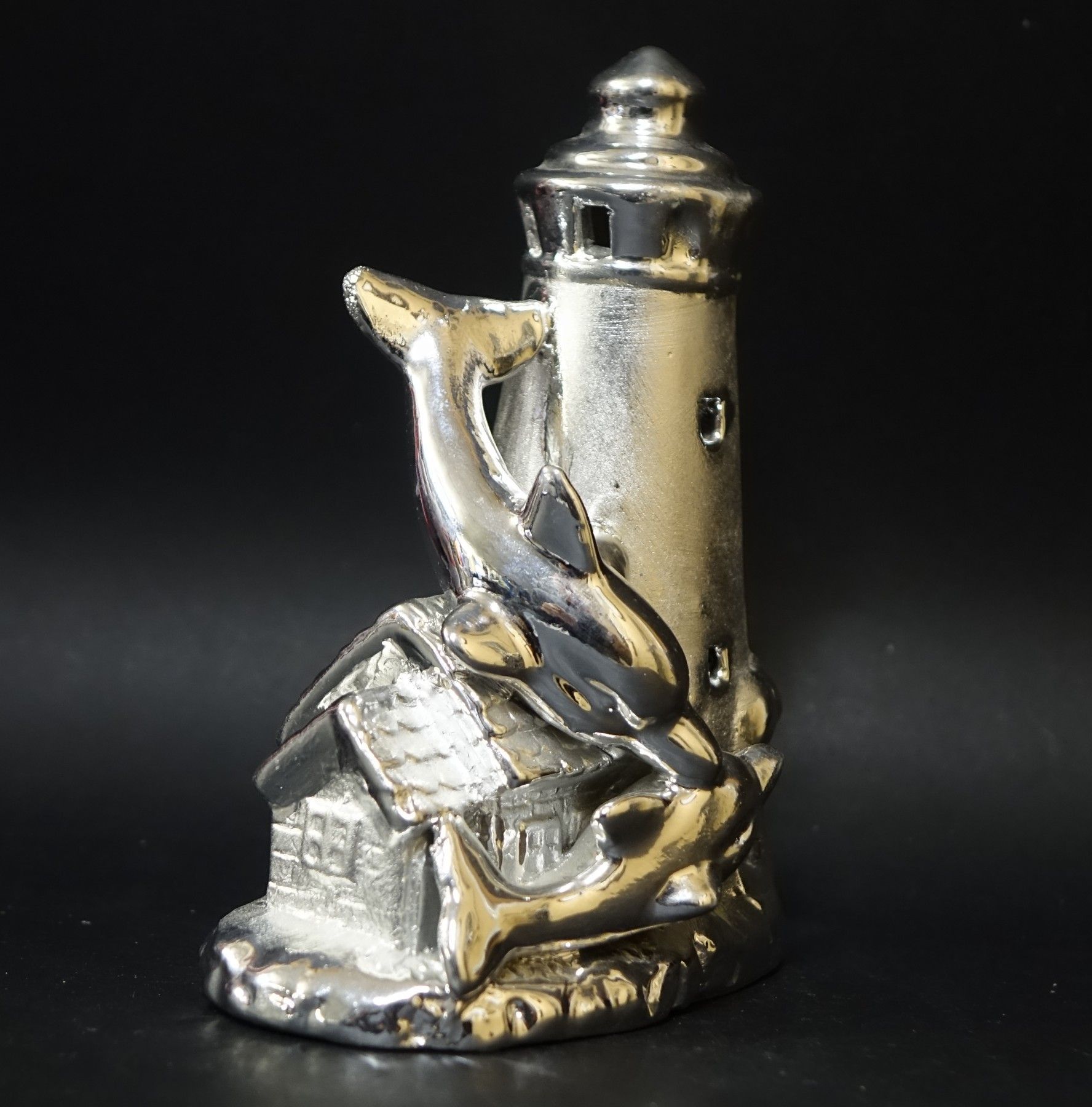 Ein wunderschöner Silber Farbige Dekoration - Ausgefallene Wunderschöne Shabby Porzellan Delfine Figur mit haus am See Turm schafft romantische Atmosphäre Ein wunderschöner Silber Farbige Dekoration eine umwerfend elegante Deko. Platzieren Sie edlen Schimmer in Ihr Zuhause, sie sind immer schön anzu
