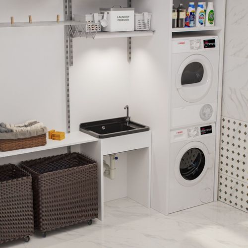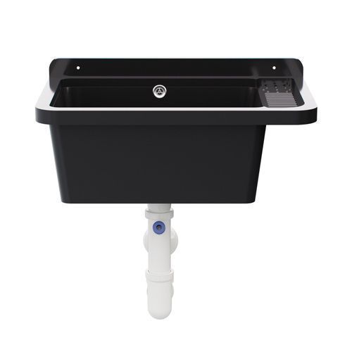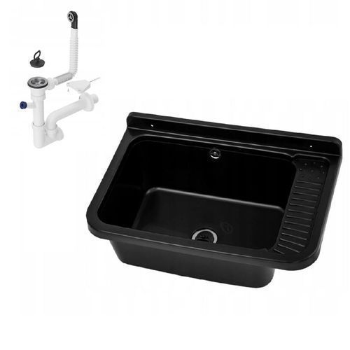 QLS Ausgussbecken Spülbecken Schwarz Waschbecken Garage Kammer Outdoor 58x38x26cm 10845
