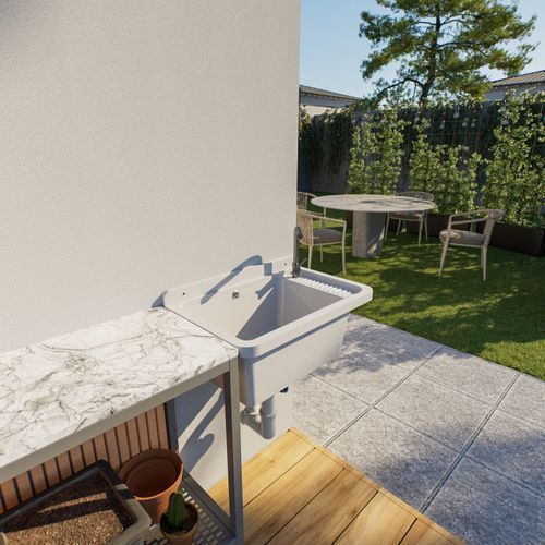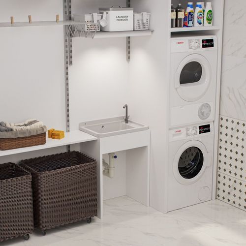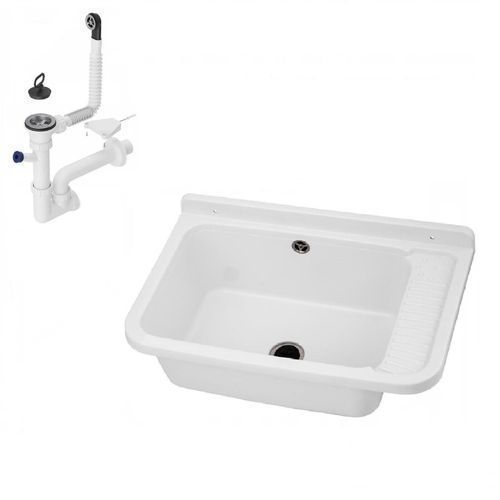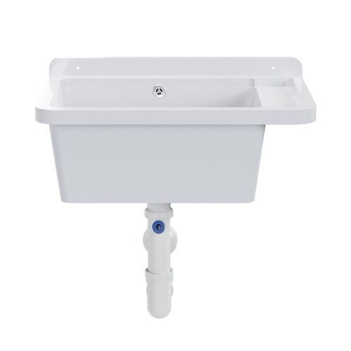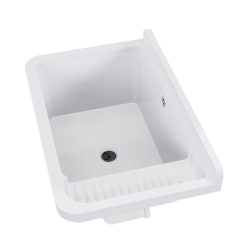 QLS Ausgussbecken Spülbecken Weiß Waschbecken Garage Kammer Outdoor 58x38x26cm 10847