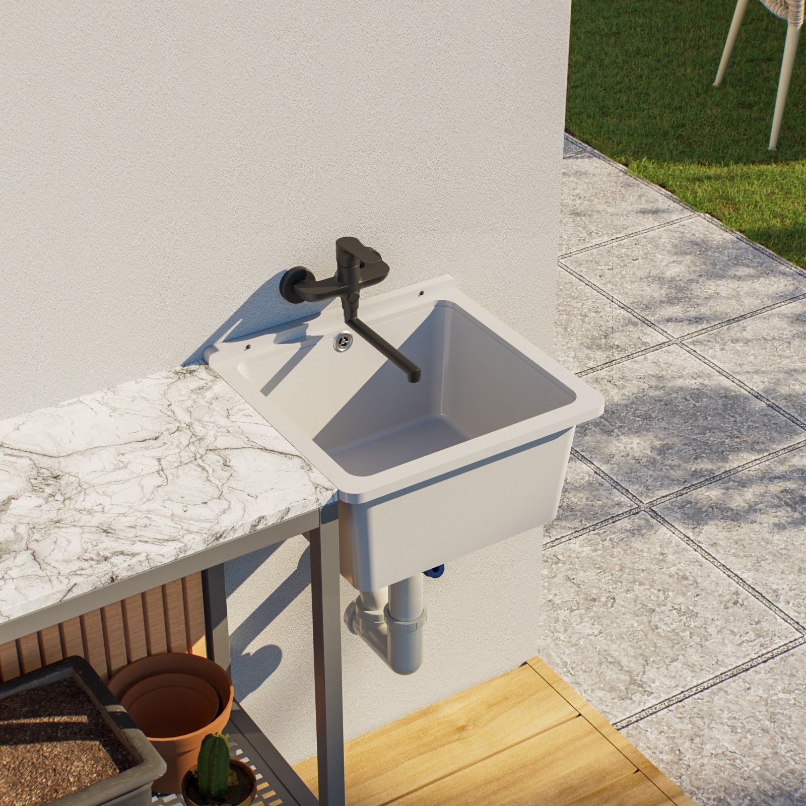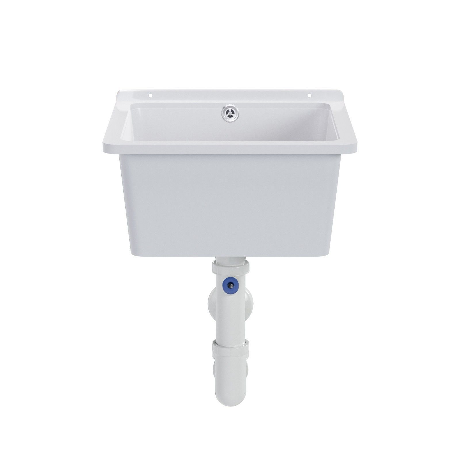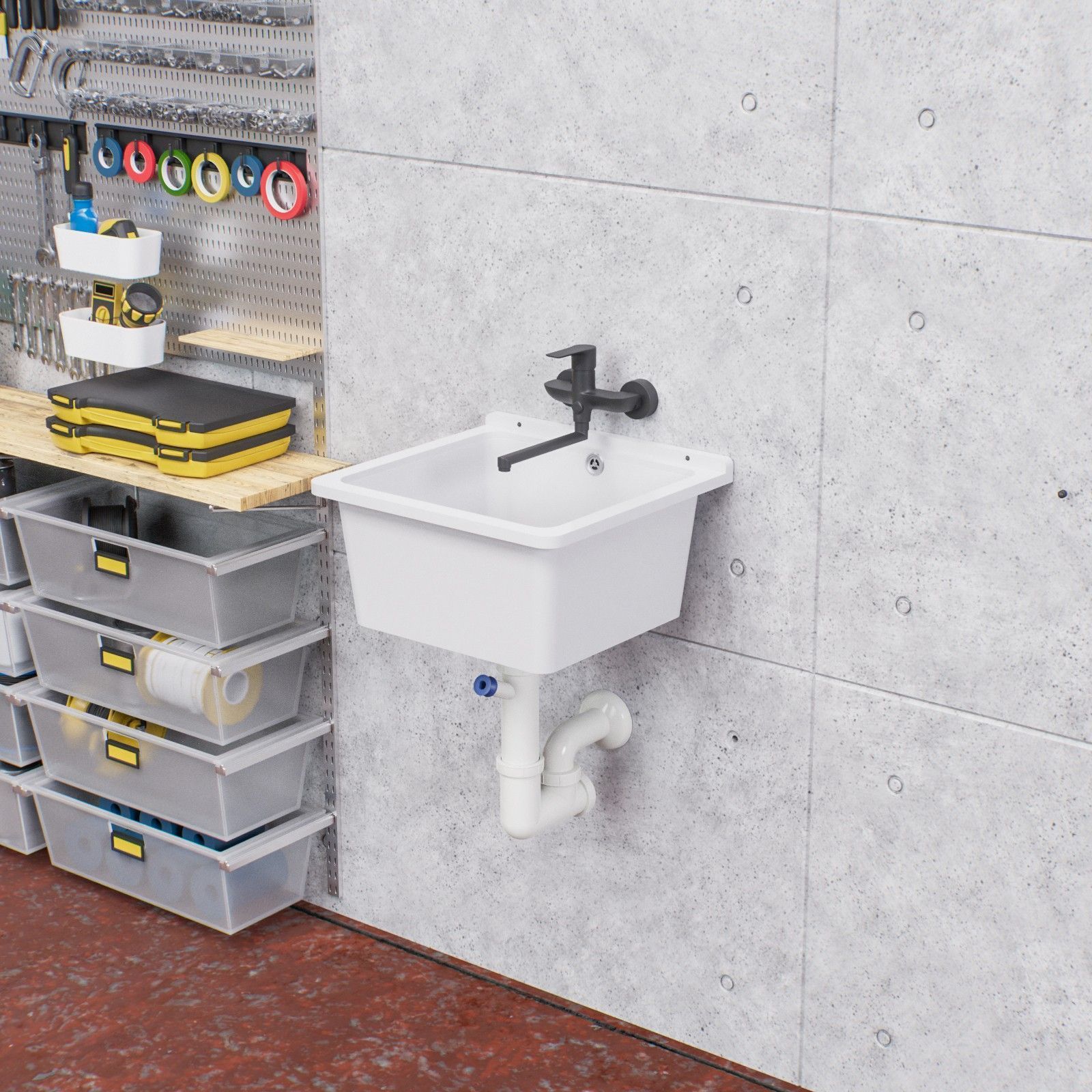 QLS Ausgussbecken Spülbecken Weiß Waschbecken Kammer Garten Garage 40x38x22cm 10843