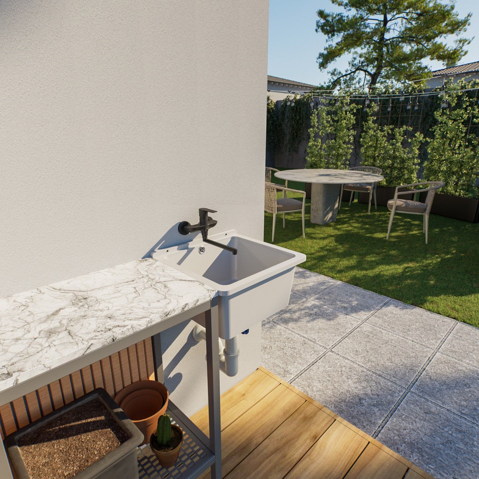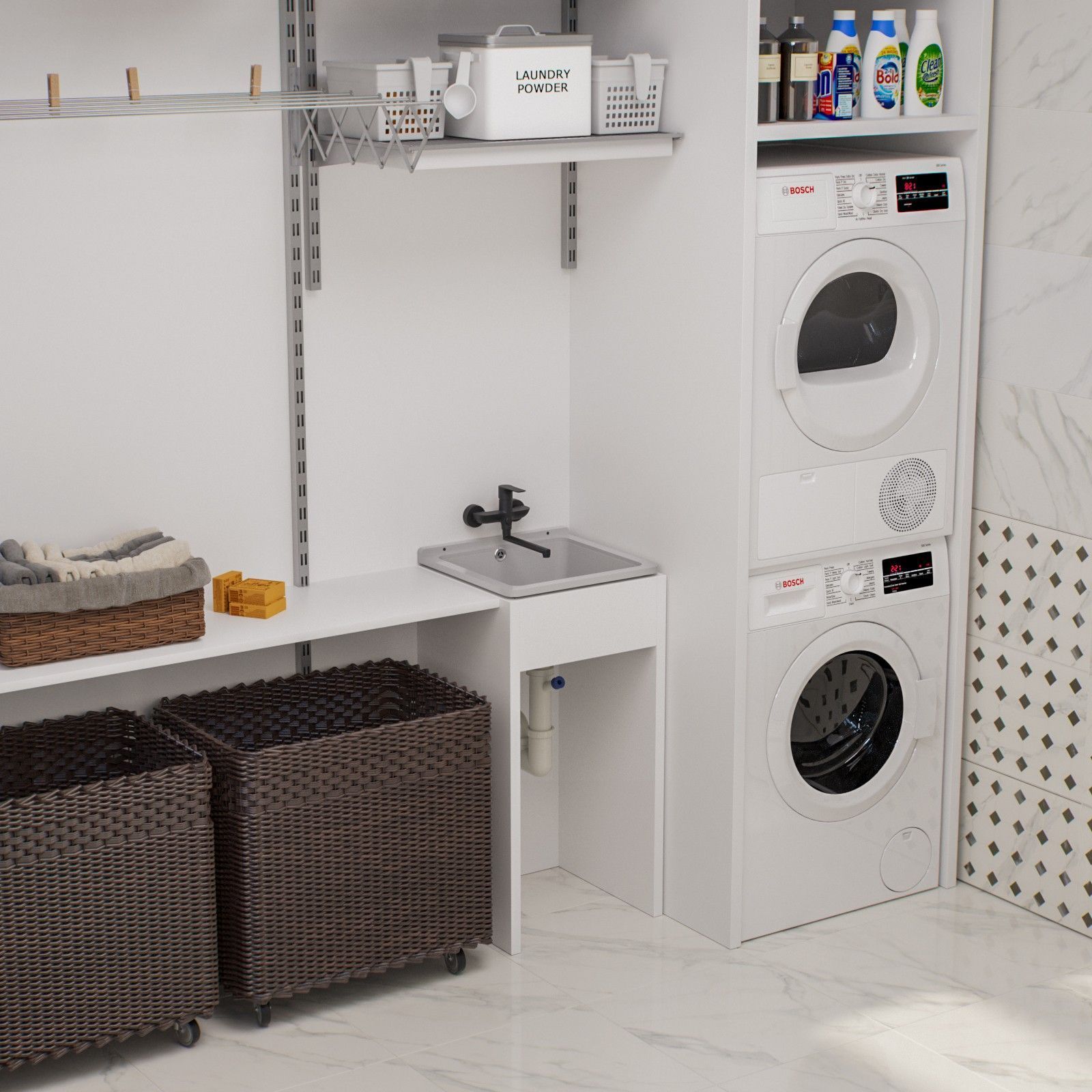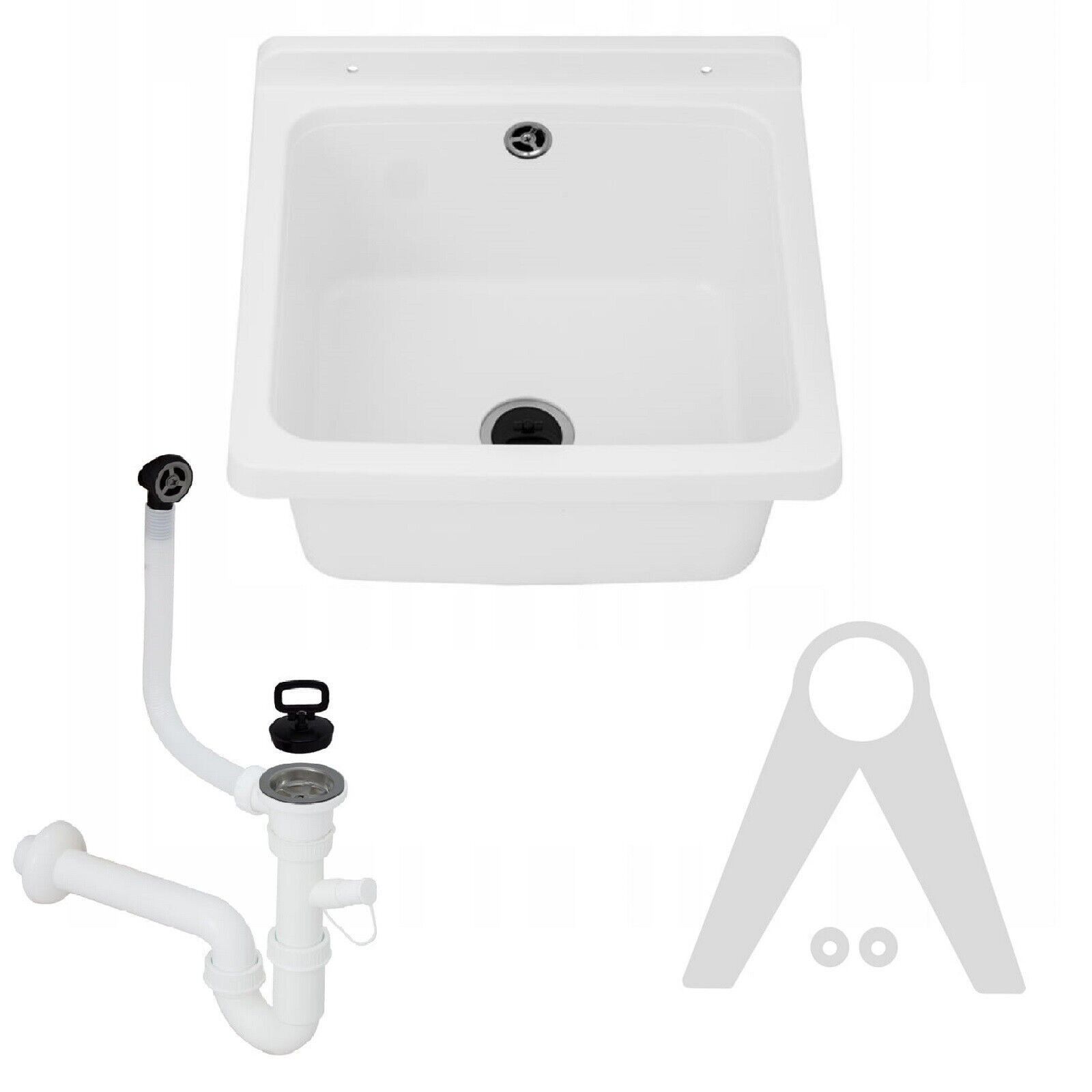 QLS Ausgussbecken Spülbecken Weiß Waschbecken Kammer Garten Garage 40x38x22cm 10843