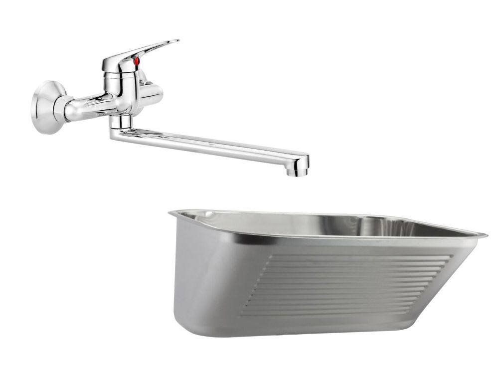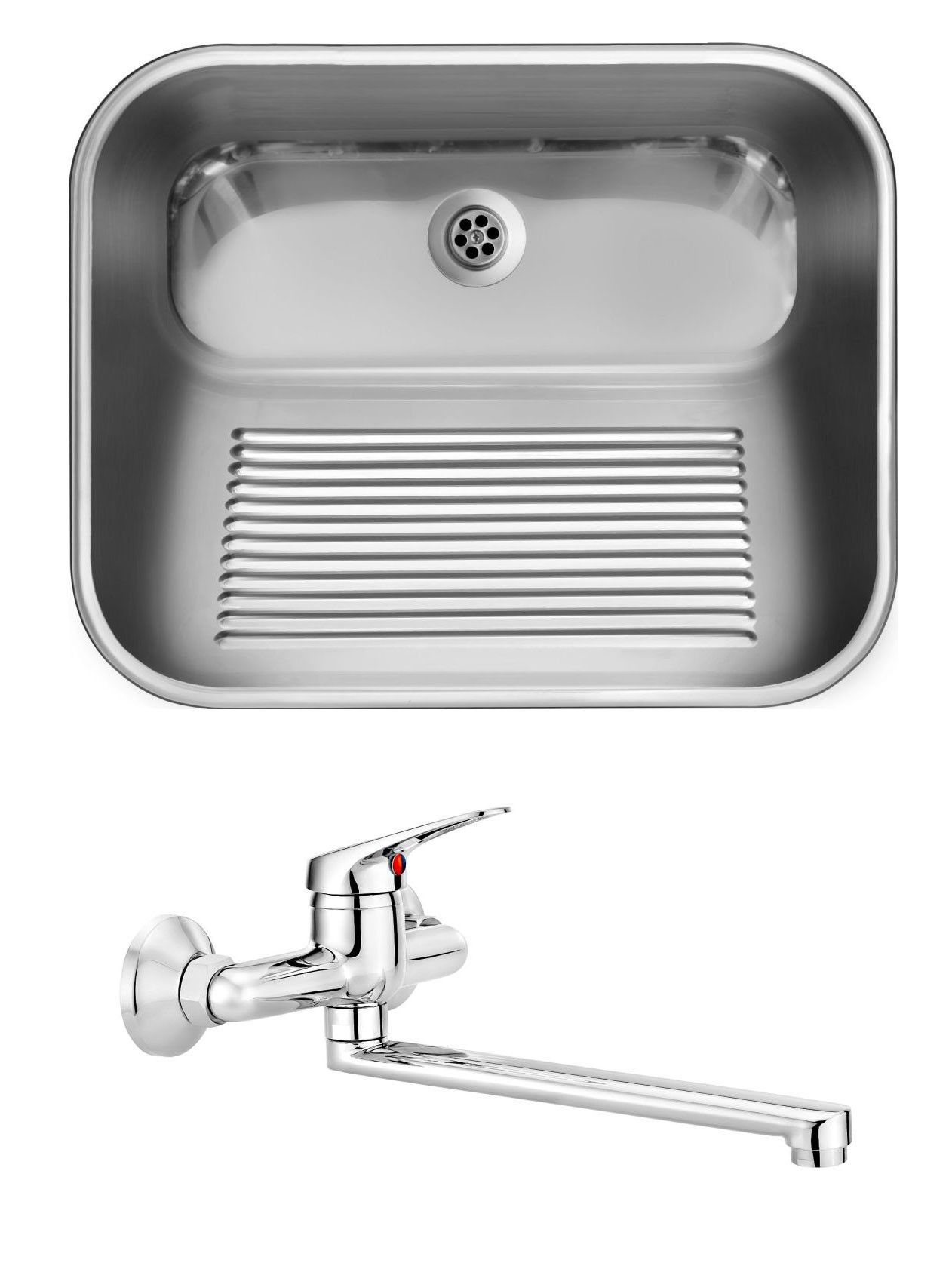 Ausgussbecken Waschbecken mit Wandarmatur für Garage Werkstatt satin-glanz 53x43x22cm