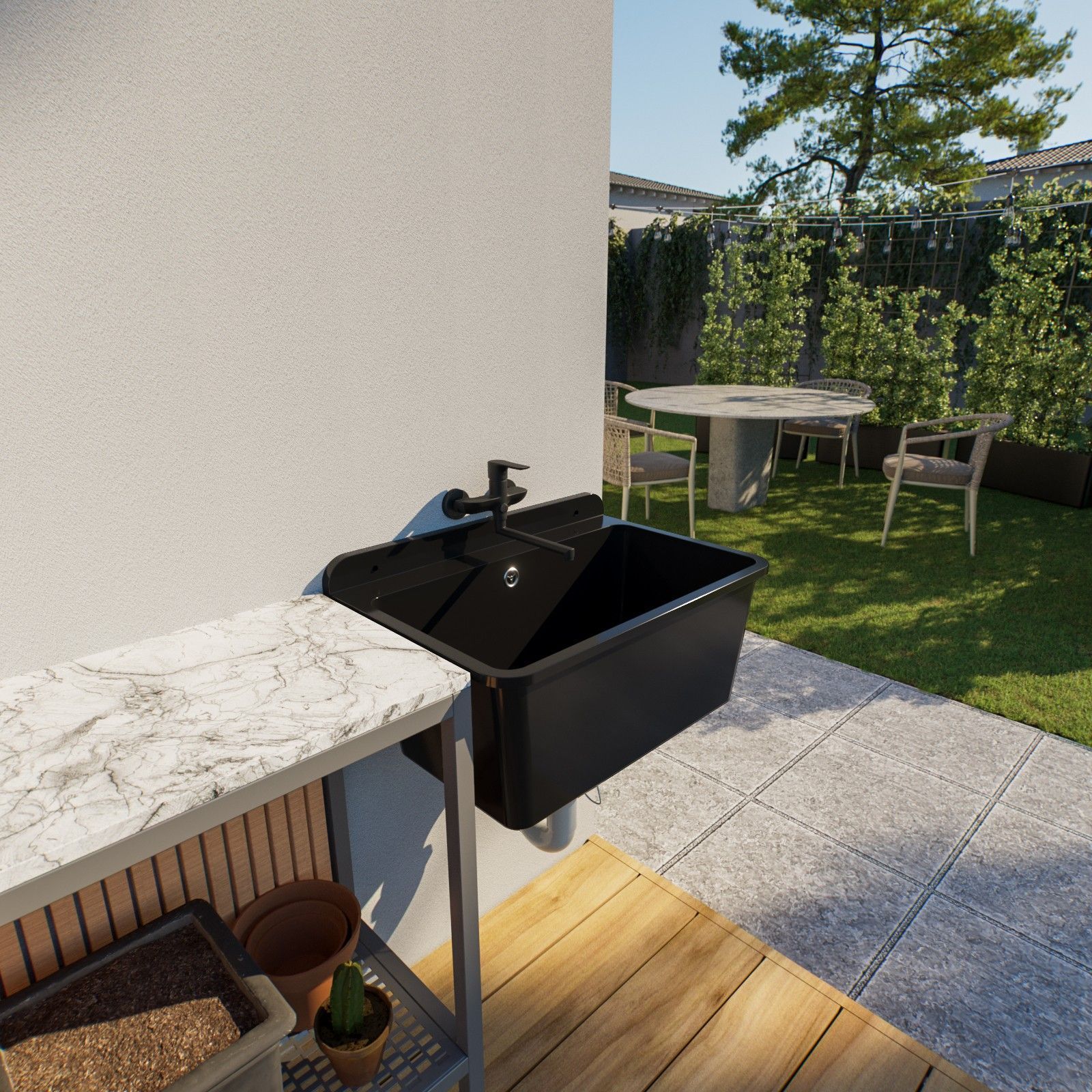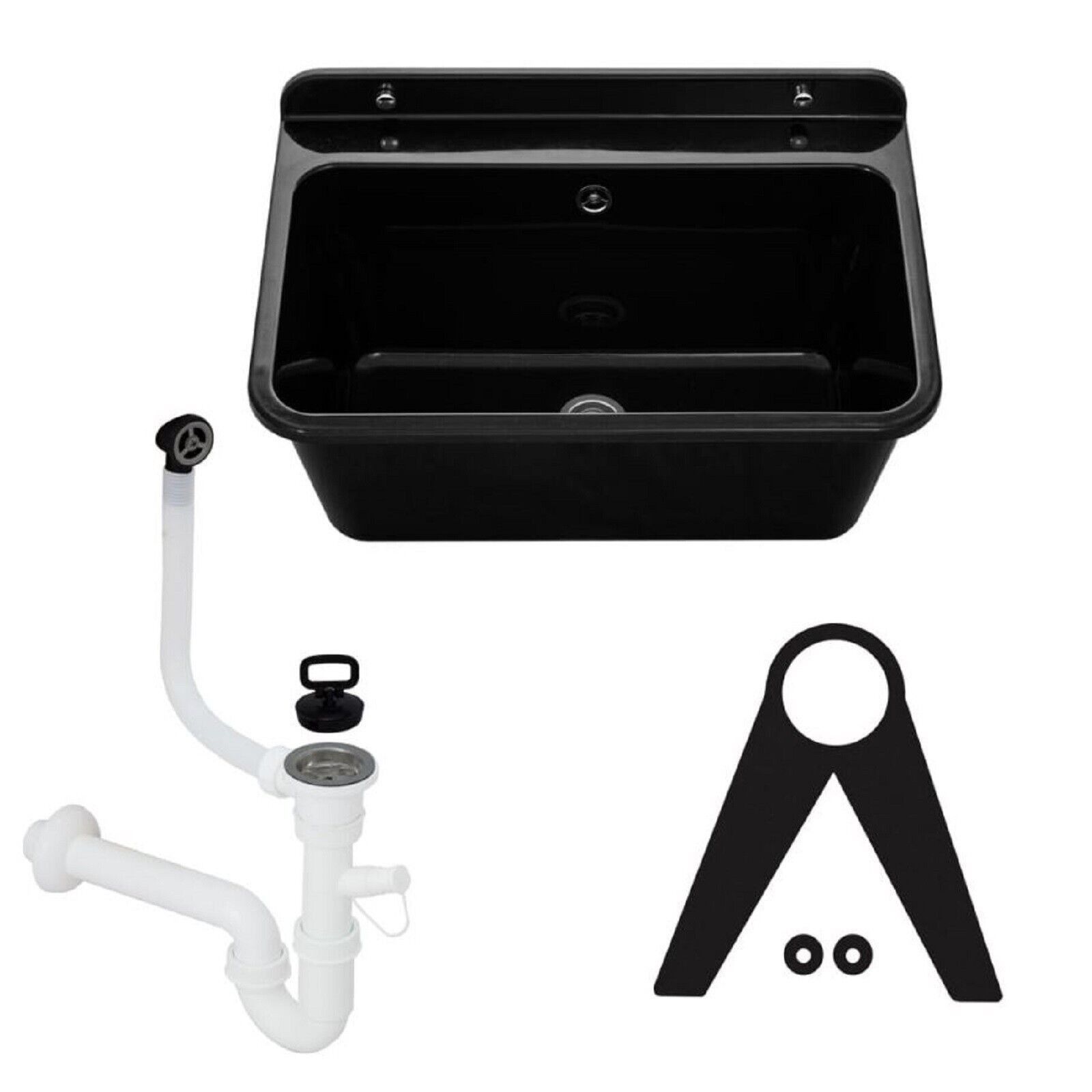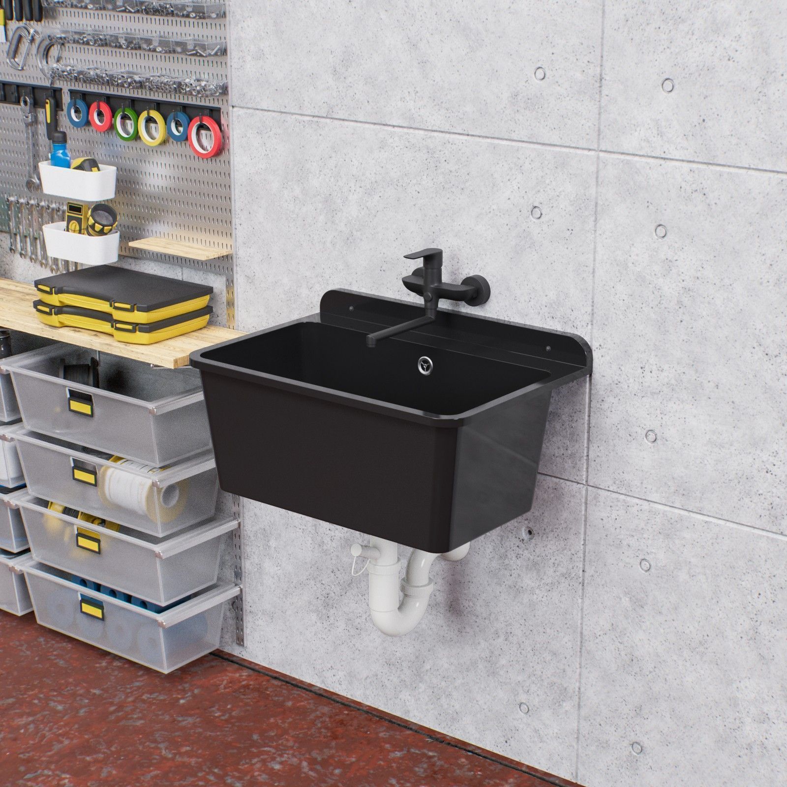QLS Ausgussbecken Waschbecken Schwarz Garage Waschraum Spülbecken 61x41x23cm 10877