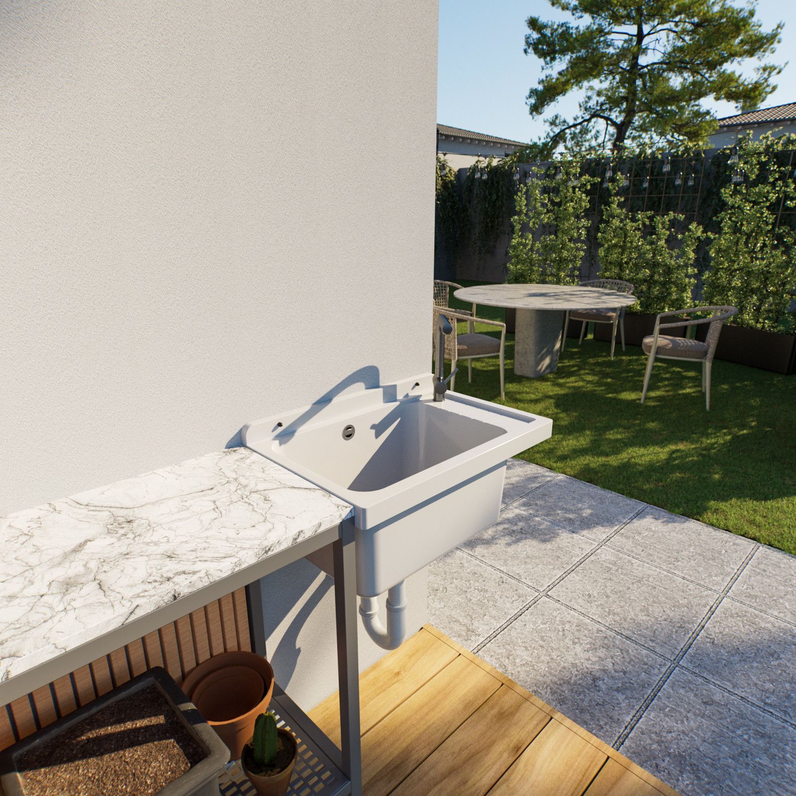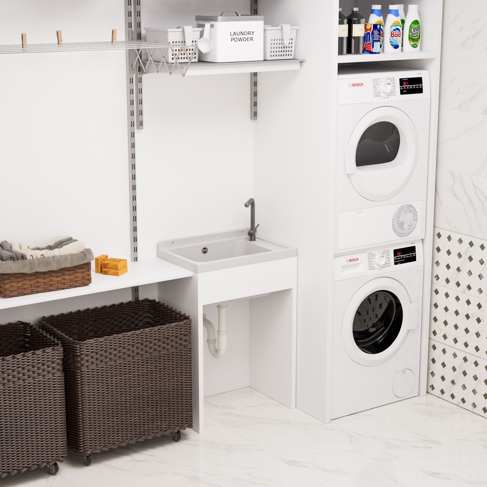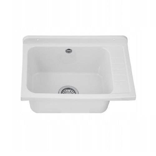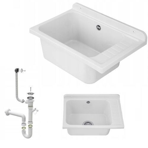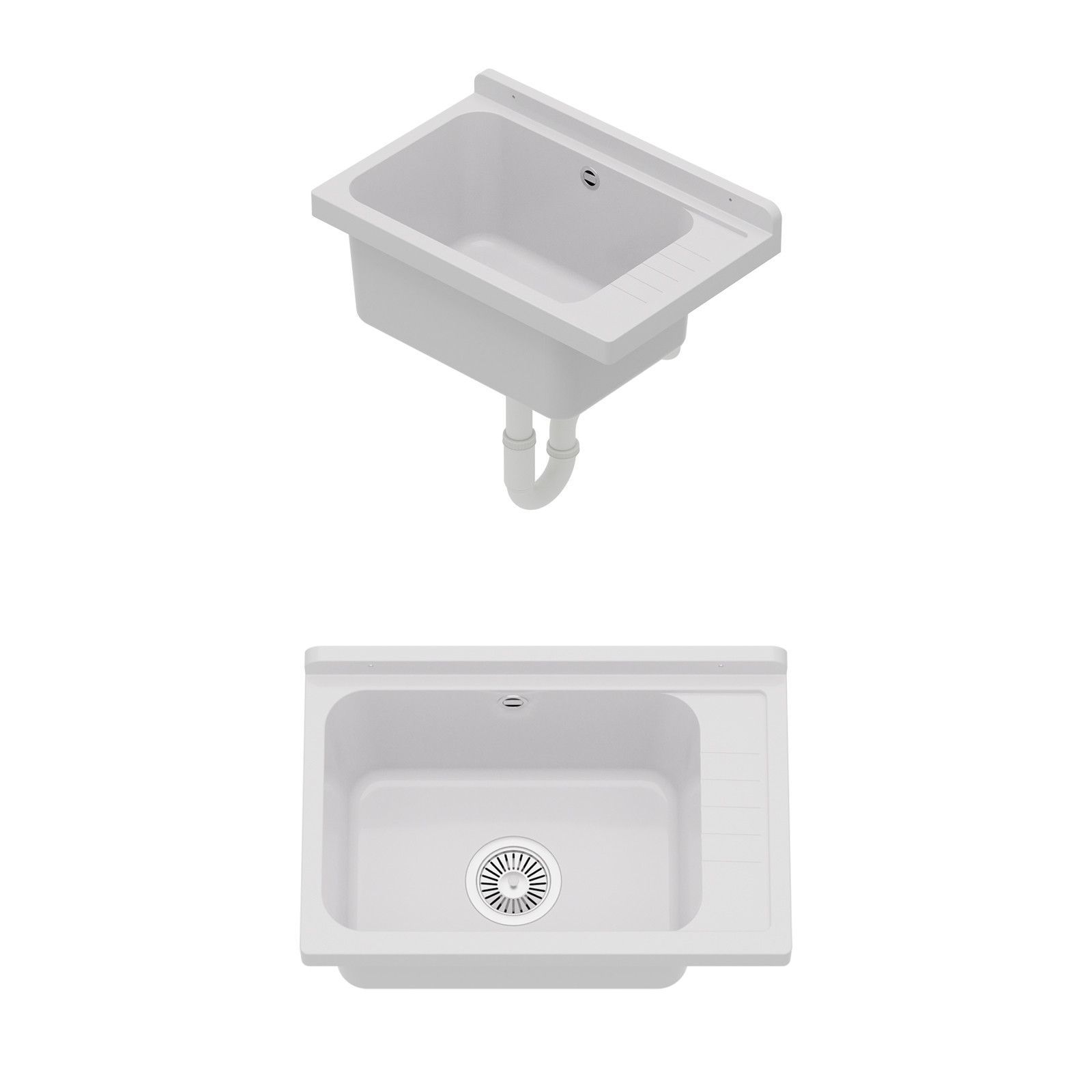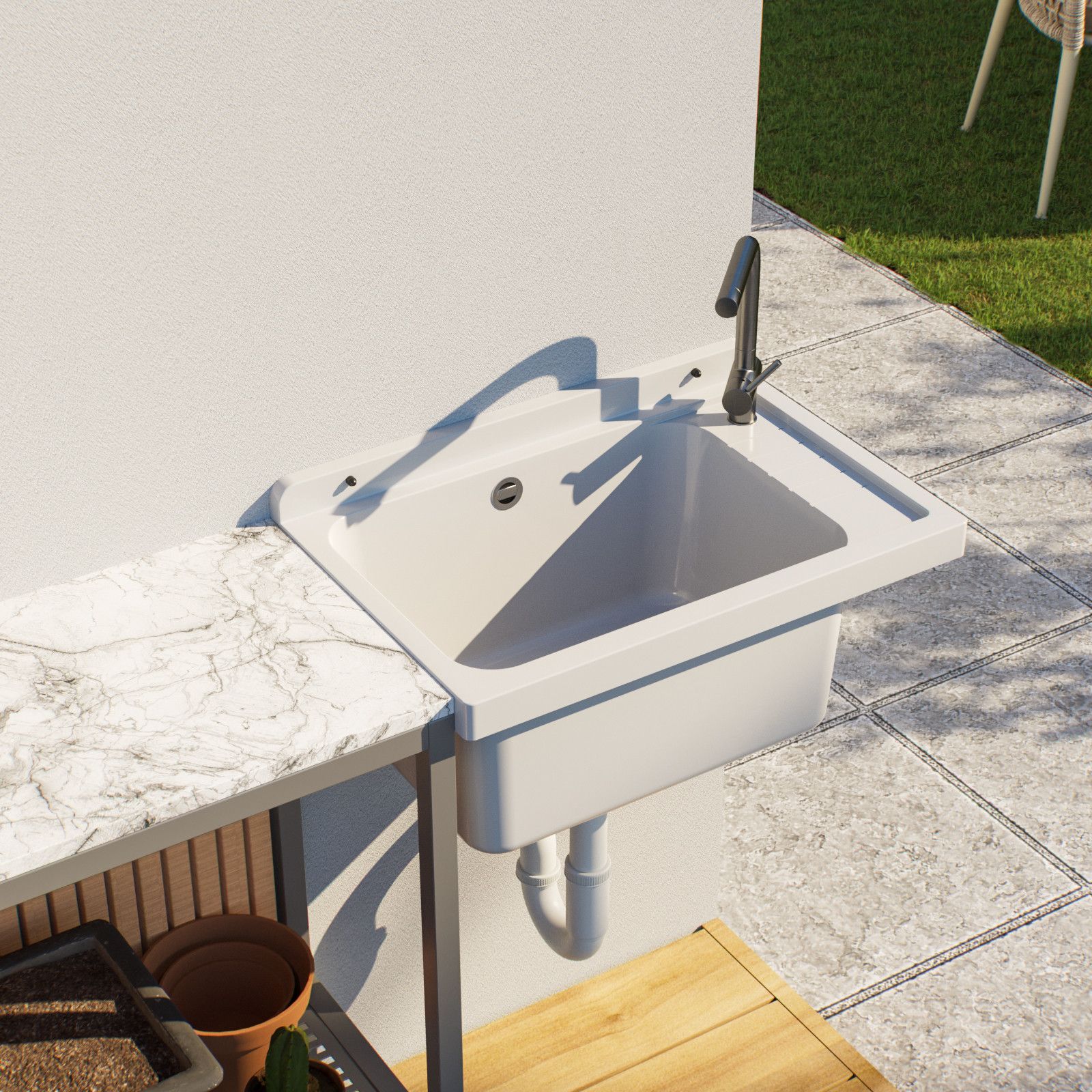 QLS Ausgussbecken Weiß Spülbecken Becken Kammer Garten Waschraum 58x38x27cm 10870
