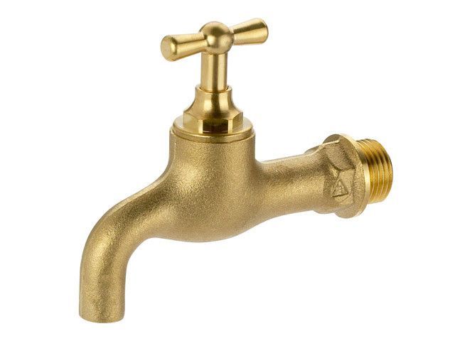 Auslaufhahn ohne Schlauchanschluss mit Knebelgriff. Zur Verwendung in Haus-/Garteninstallationen oder als Zapfhahn.
