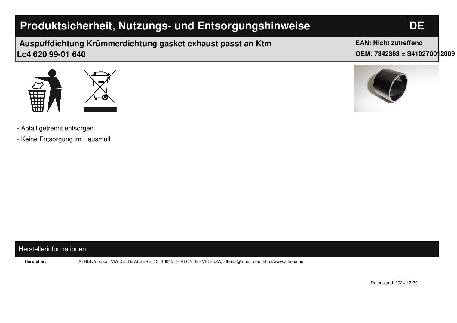Auspuffdichtung Krümmerdichtung gasket exhaust passt an Ktm Lc4 620 99-01 640