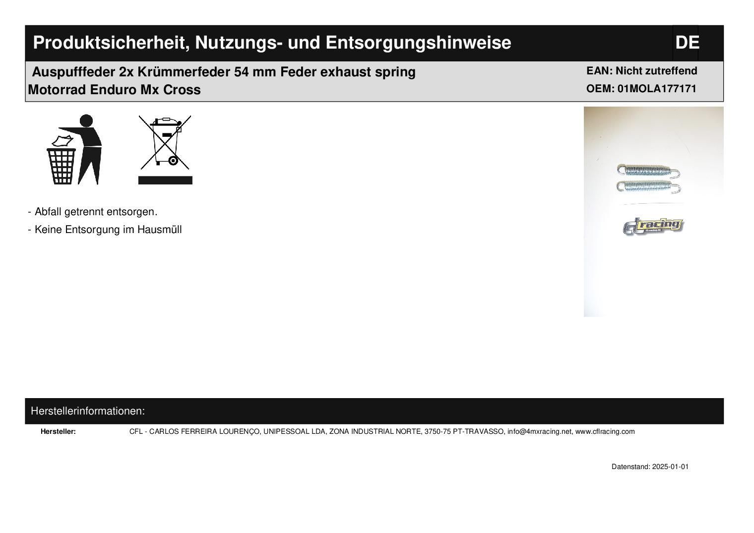 Auspufffeder 2x Krümmerfeder 54 mm Feder exhaust spring Motorrad Enduro Mx Cross