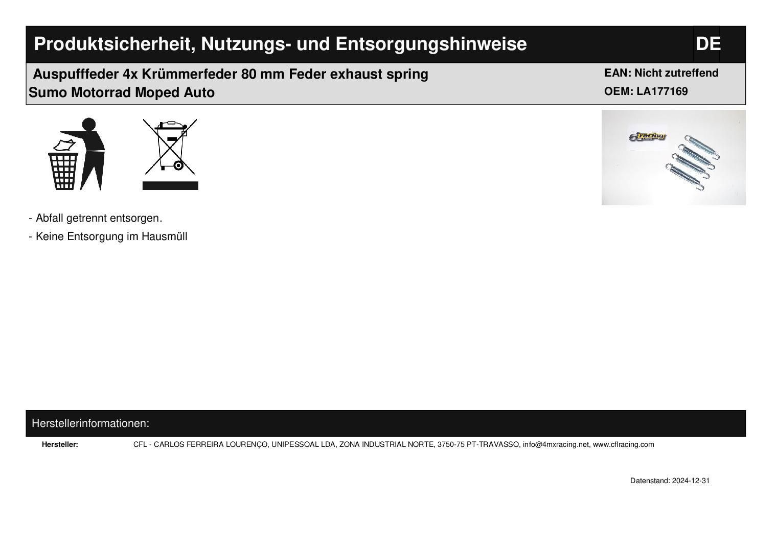 4x Auspufffedern Krümmerfedern 80 mm exhaust spring Sumo Motorrad Moped Auto In dieser Auktion gibt es folgenden Artikel zu kaufen: Auspuff- Krümmerfedern (siehe Foto) Modell: universal Länge: 80 mm Lieferumfang: 4 Stück Artikelzustand: neu Bei Unklarheiten oder Fragen bitte erst E-Mail schreiben. 1