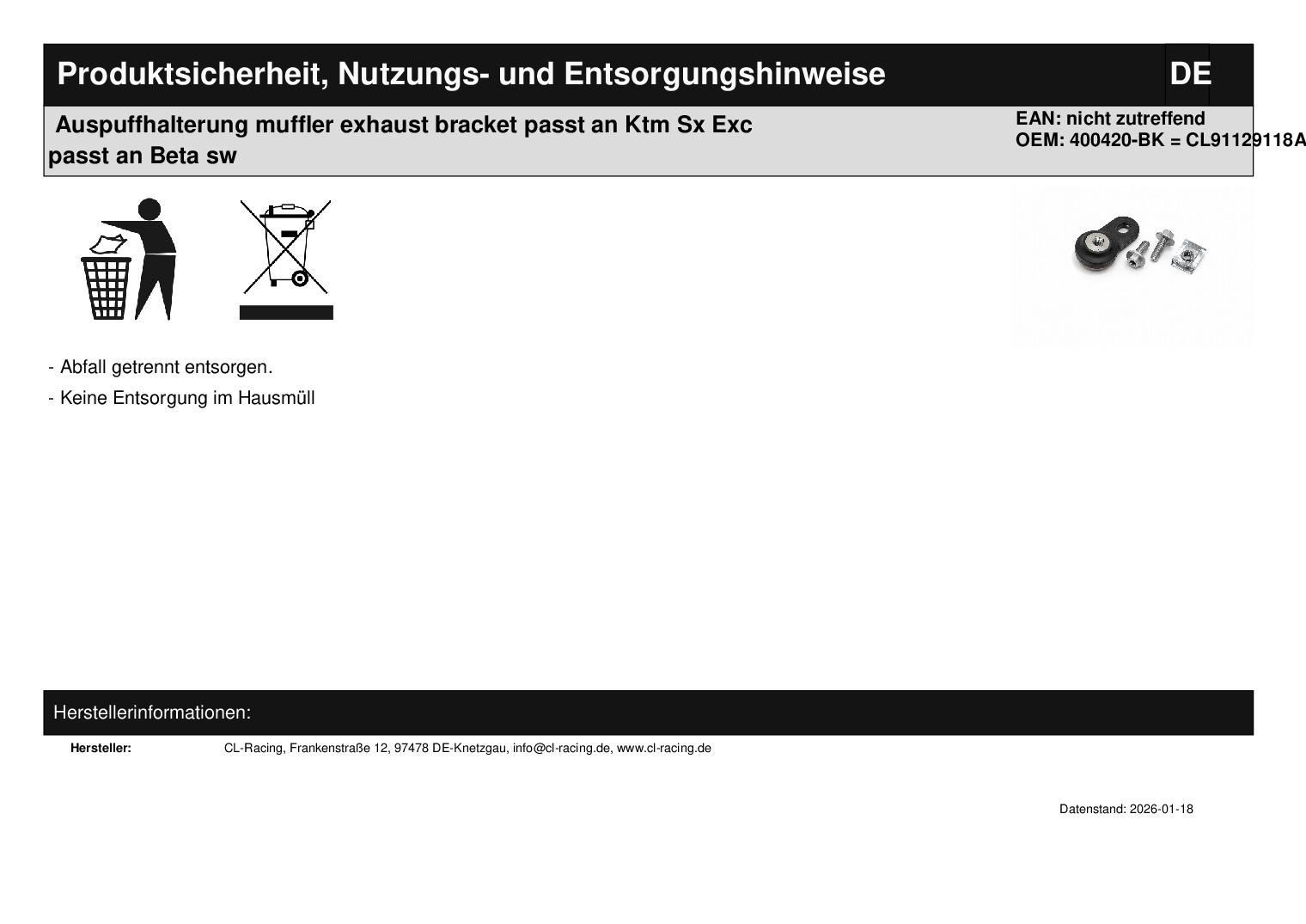 Auspuffhalterung muffler exhaust bracket passt an Ktm Sx Exc passt an Beta sw In dieser Auktion gibt es folgenden Artikel zu kaufen: Auspuffhalter (siehe Foto) Modell: passend für Ktm SX 125 Bj.: 1998 - 2024 SX 150 Bj.: 1998 - 2024 SX 200 Bj.: 1998 - 2024 SX 250 Bj.: 1998 - 2024 SX 300 Bj.: 1998 - 2