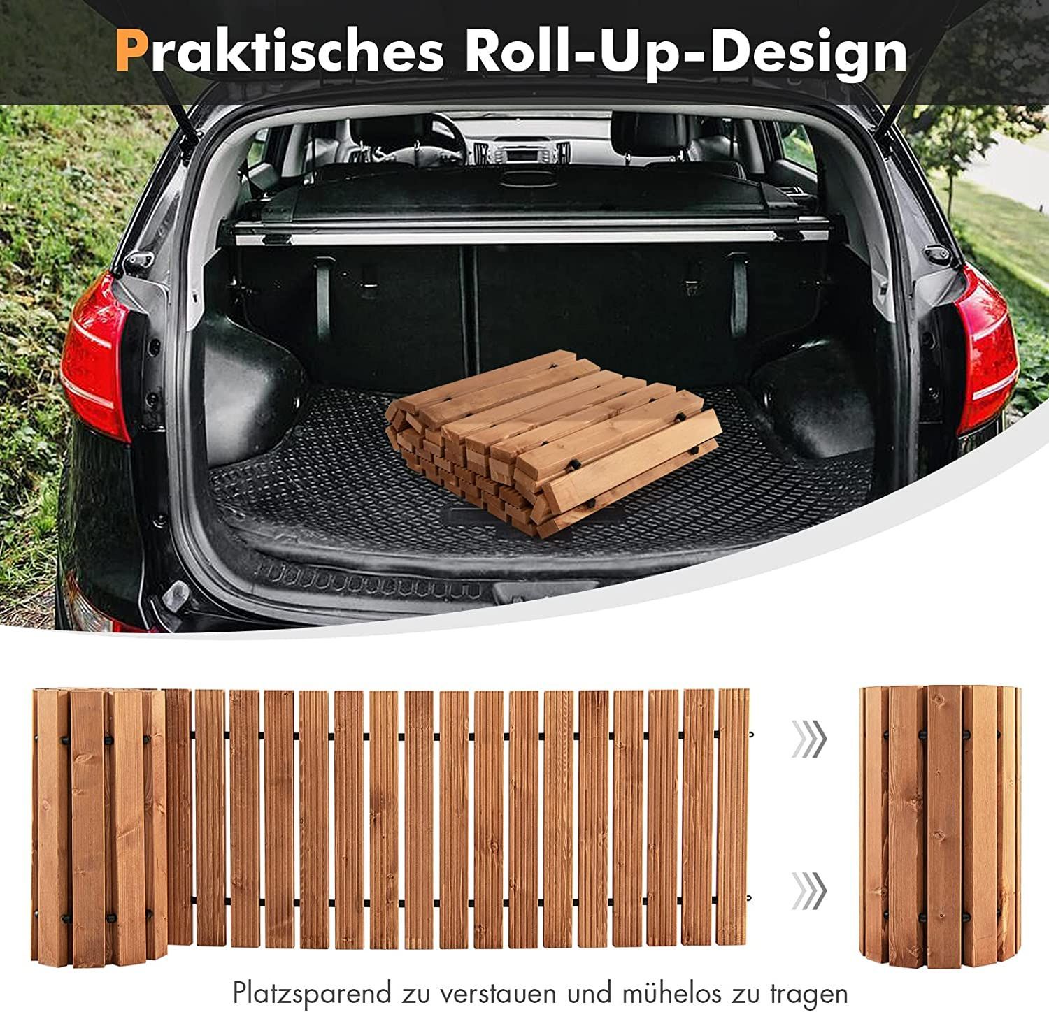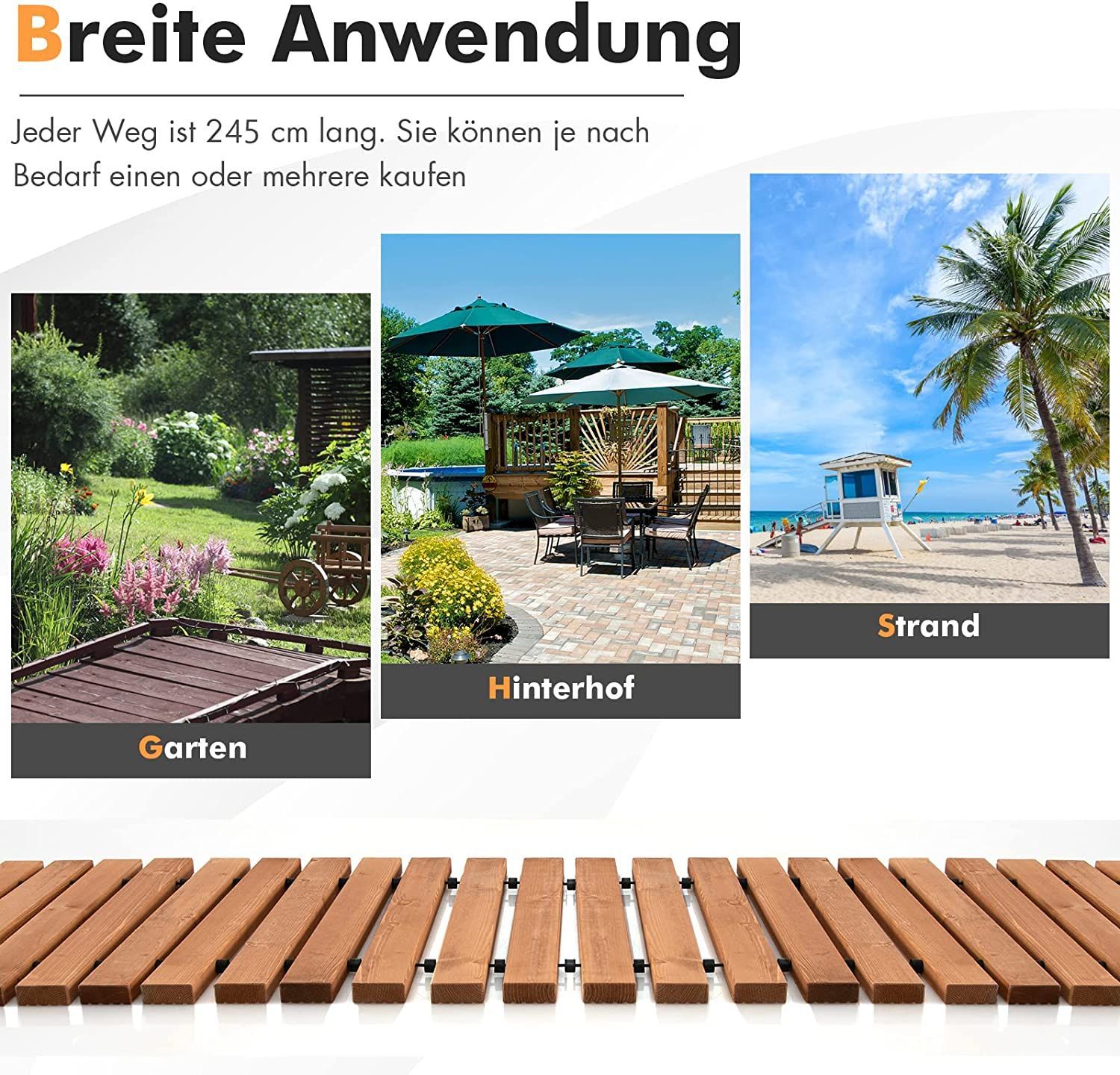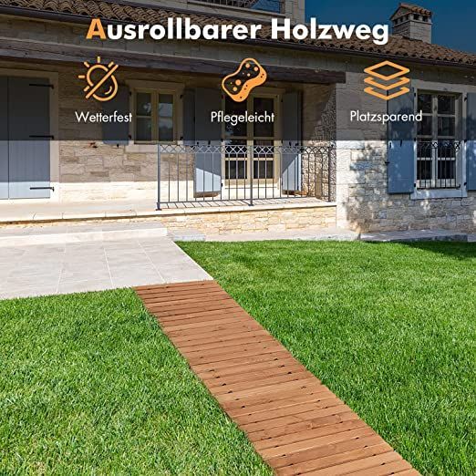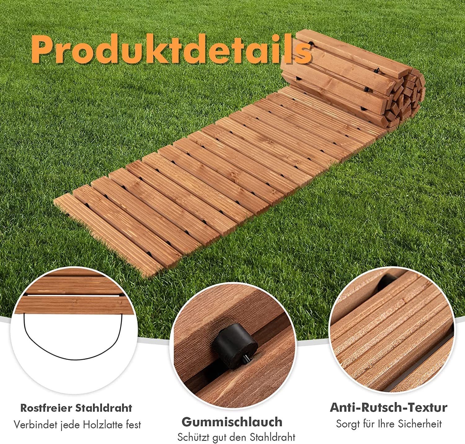 Ausrollbarer Garten-Holzweg, 245cm Rollweg mit Stahldraht, Gartenweg für Garten