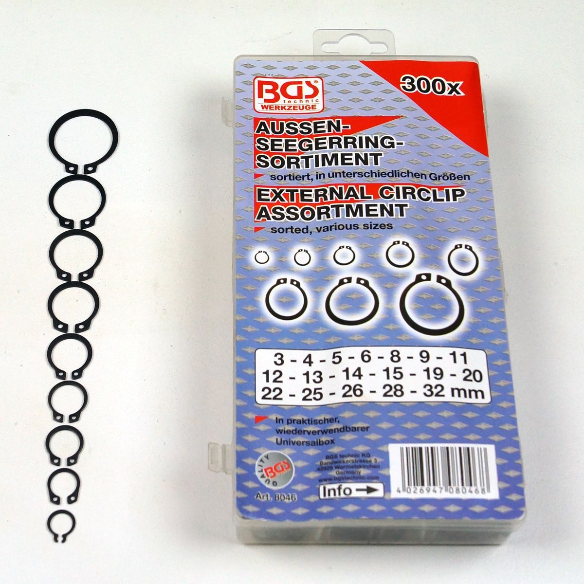 BGS Außen Seegerring Sortiment, Sprengringe Ø 3 - 32 mm, Sicherungsringe 300 tlg