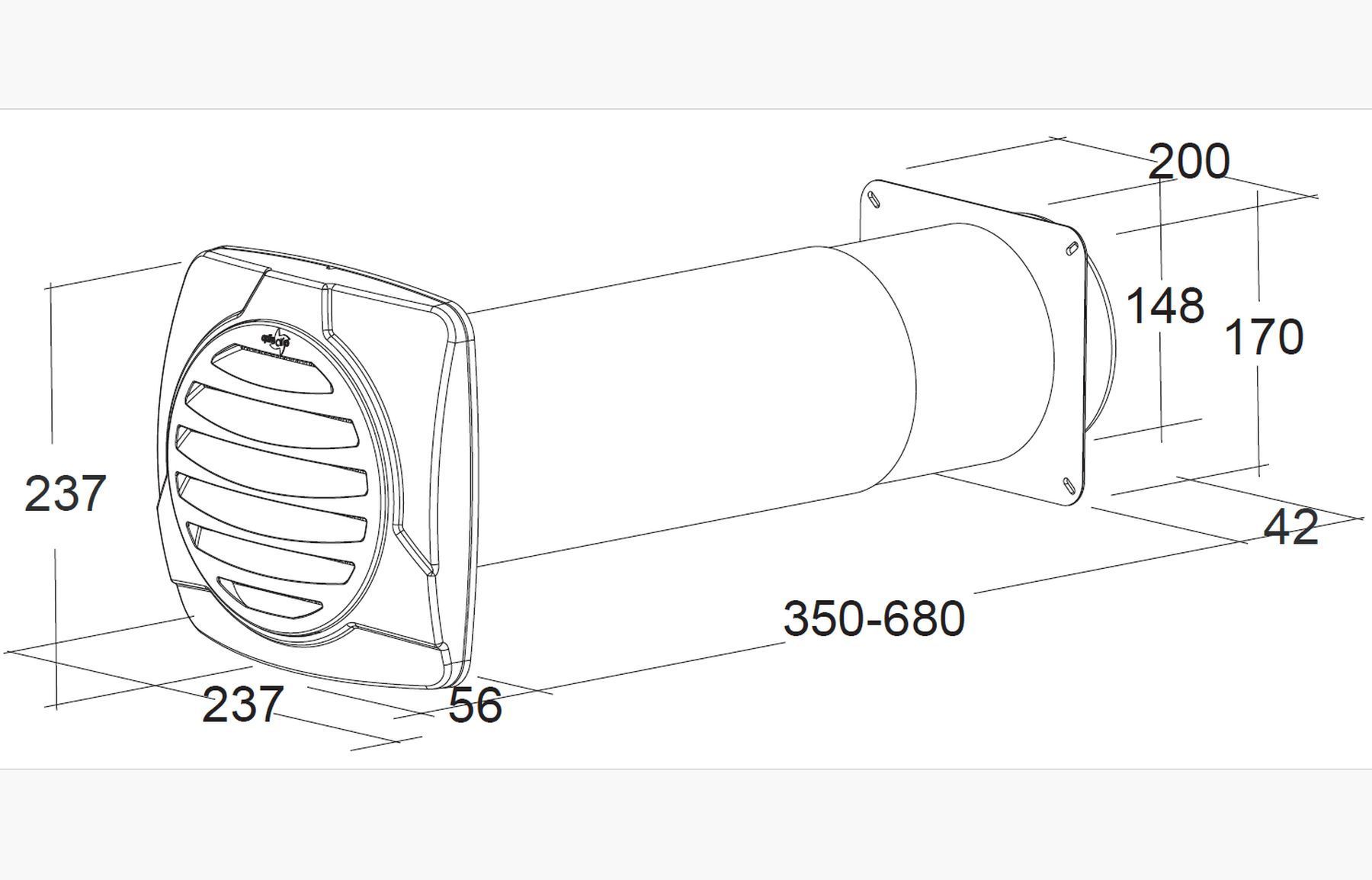 Aussengitter Ø 150mm Teleskop-Mauerkasten 35-68cm Abluft Magnet-Rückstauklappe