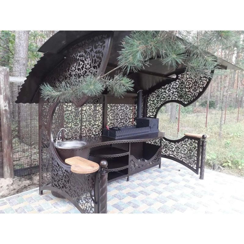 Außenküche ? Luxus-Gartenpavillon Emir mit Ofen in Schwarz