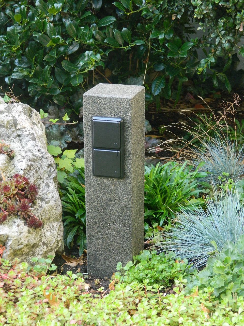 Außensteckdose, Granit anthrazit, geflammt, doppelt