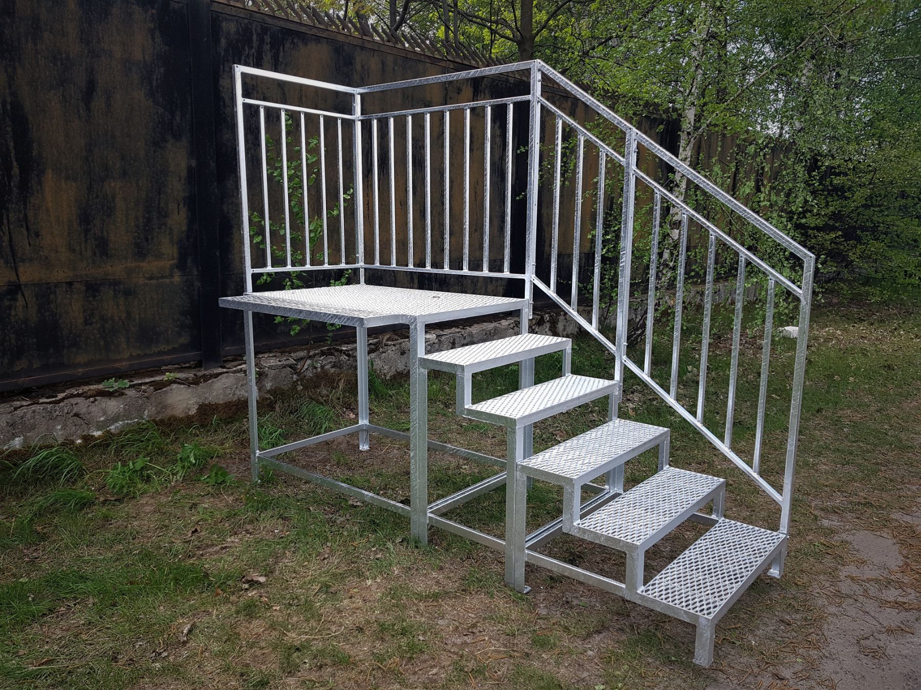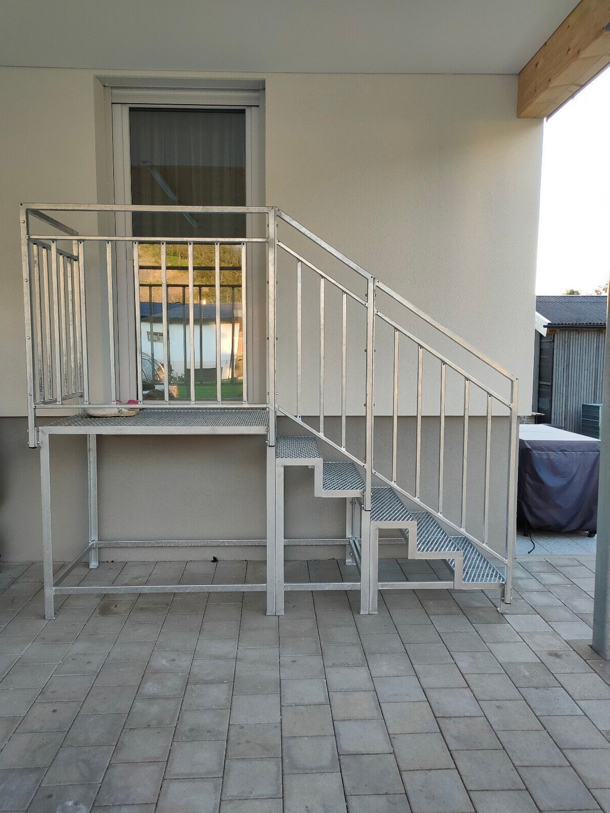 Außentreppe mit Podest Stahltreppe 4 Stufen Breite 80 cm Höhe 90-105 cm