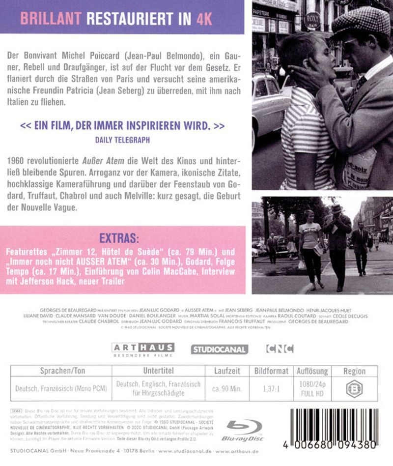 Außer Atem (BR) 60th Anniv. Edition Min: 90/Mono, TS-HD/WS s/w