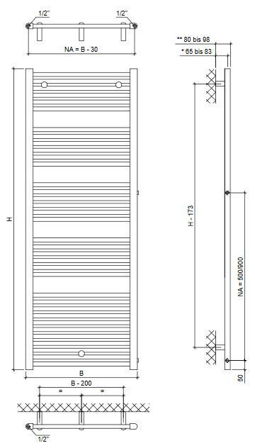Austauschheizkörper Badheizkörper Classic SA Seitenanschluss Handtuchheizkörper