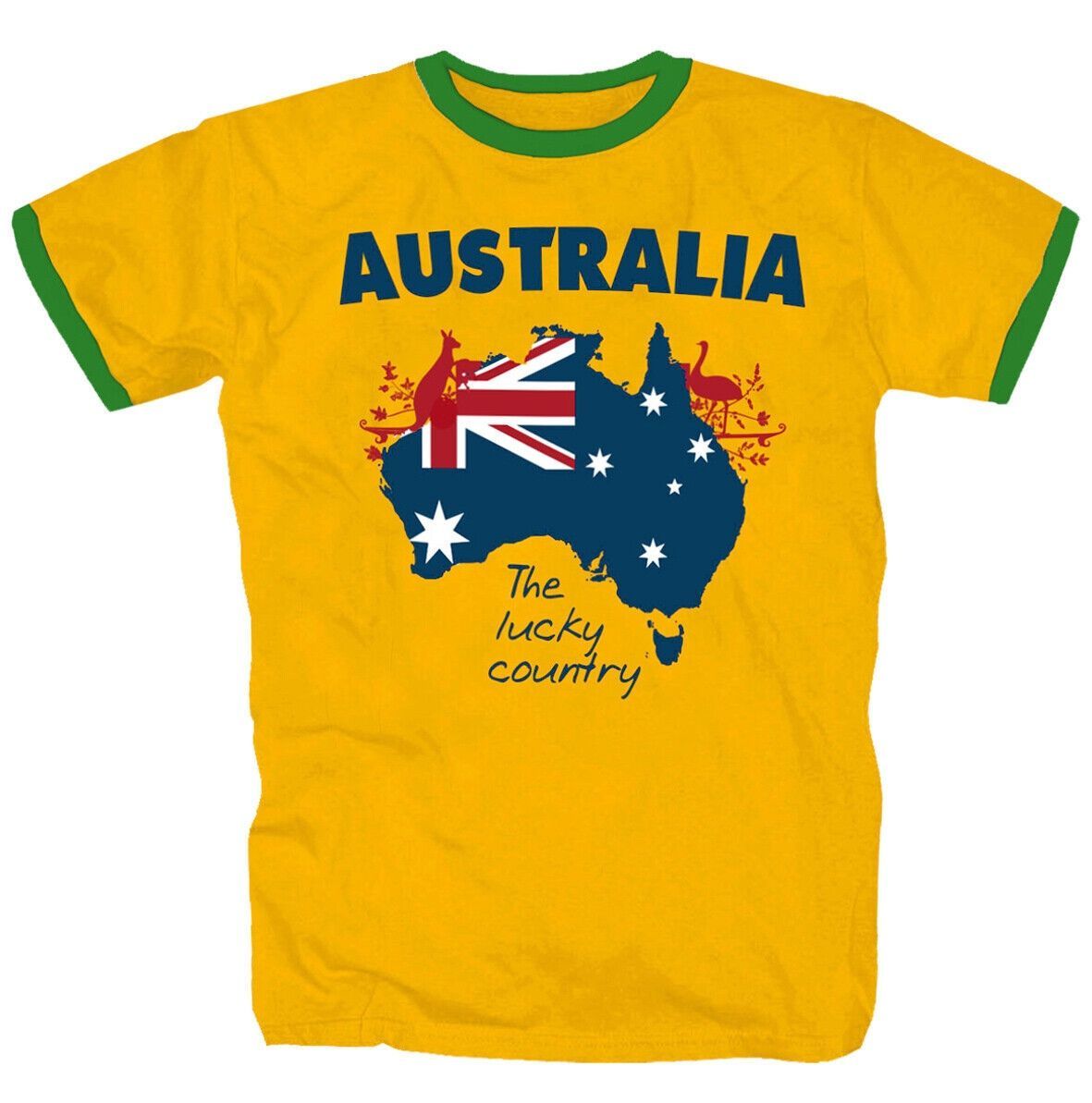 Australia T-Shirt - Qualitativ hochwertige Shirts - 100 % Baumwolle - einteiliger Baumwolle Lycra Rippstrick-Kragen - Doppelnähte an allen Säumen und am Halsausschnitt