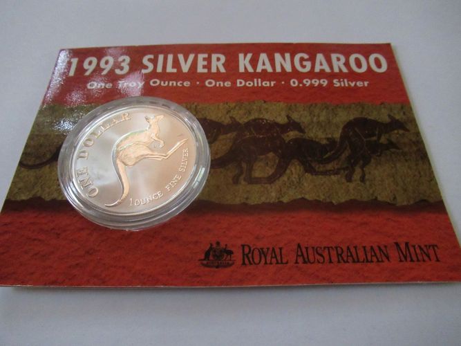 Australien Kangaroo 1993, 1 oz 999 Silber, 1 Dollar, original auf Karte