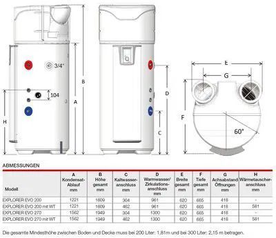 Brauchwasser-Wärmepumpe mit integriertem PV Eingang. Geringer Platzbedarf aufgrund von seitlich positionierten, drehbaren Luft-Anschluss-Stutzen. Liegender Transport problemlos möglich. Steuerbar über Smartphone oder Tablet. Smart Control und Smart-grid-fähigkeit sind gegeben. Kalkunempfindliche Trockenheizung. Integrierbar in Smart-Home System (z-Wave Protokoll). Wartungsfreie Fremdstromanode. Einsatzbereich -5°C bis +43°C.